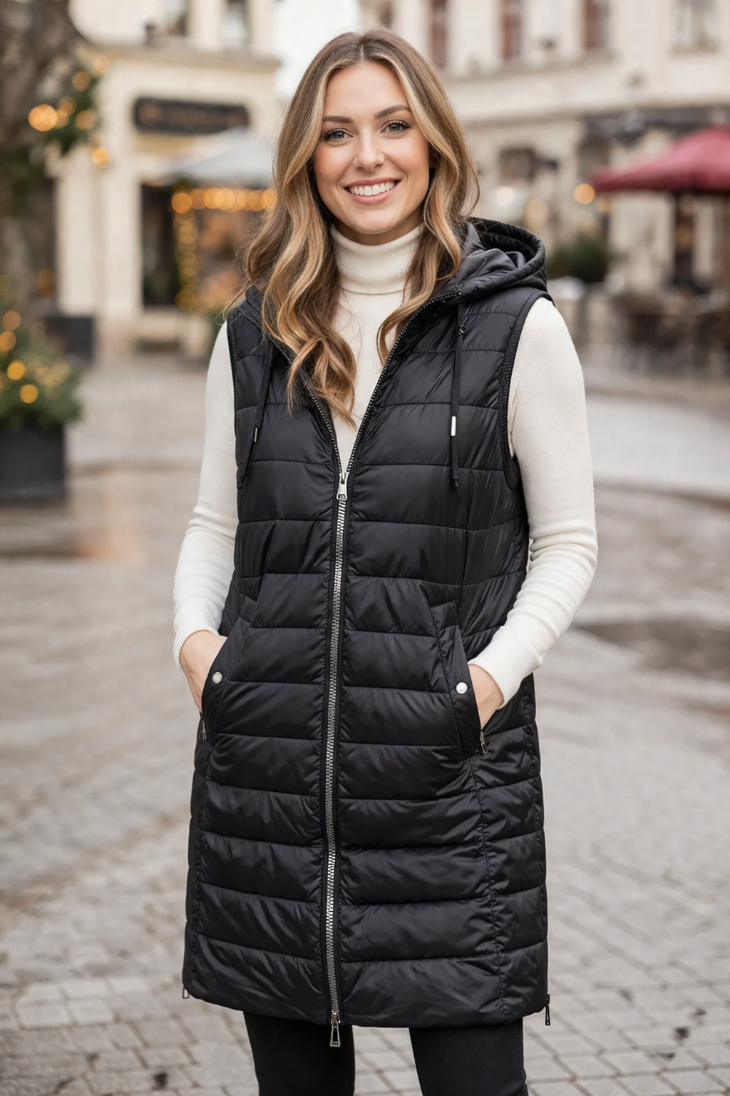 "Technical Down" eða "gerfi dún" fylling, engar fjaðrir, enginn dúnn, en sömu þægindi. "Vegan vesti"