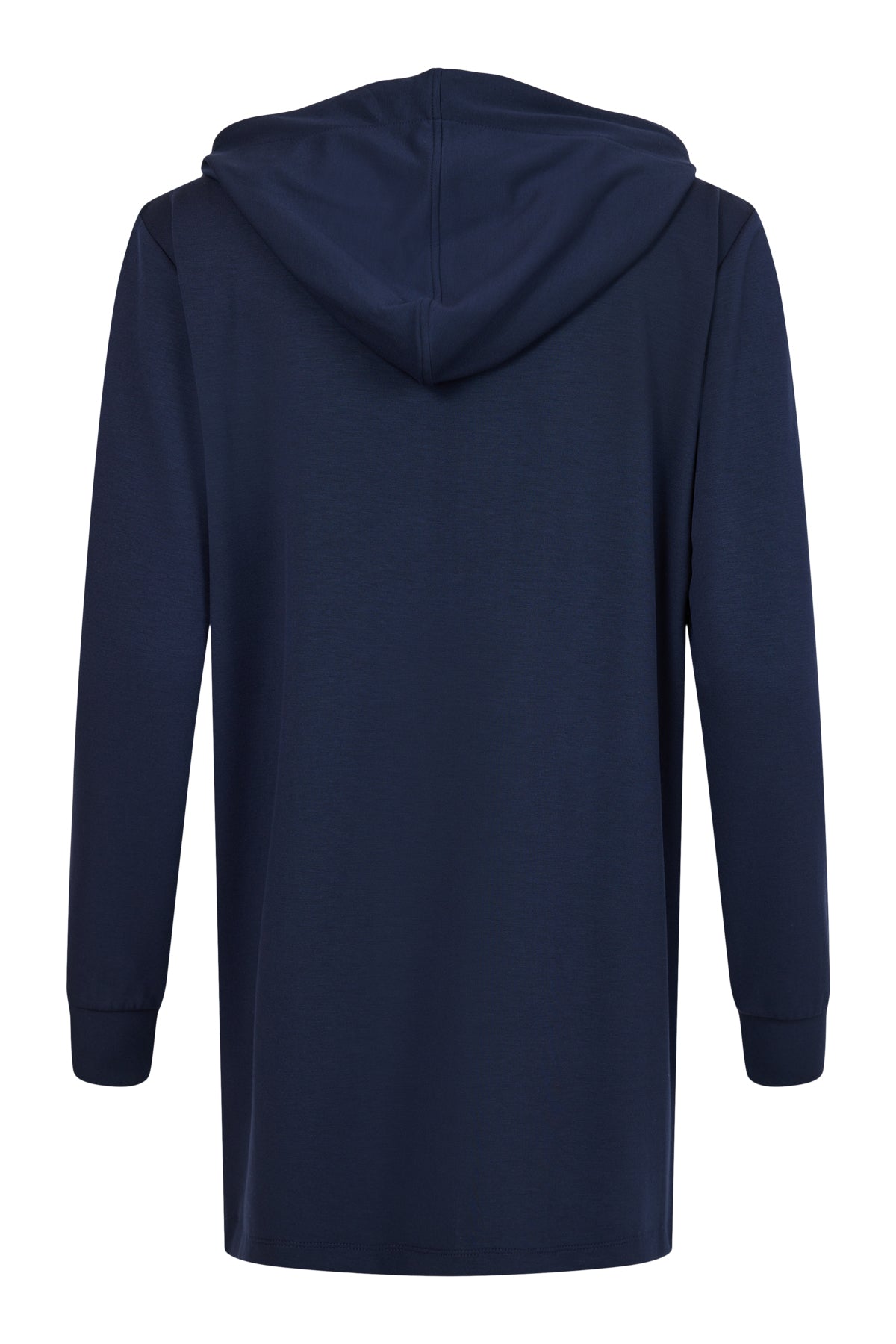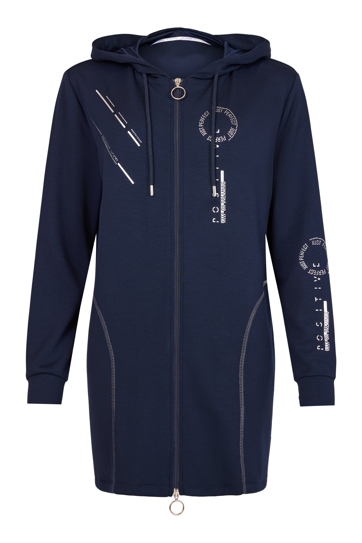 I'cona - Iyla síð rennd hettupeysa. Tvöfaldur rennilás, saumar að framan, stroff framan á ermum, reimar og texti. Sportleg og þægileg með leggings eða treggings.