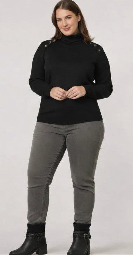 That's Me - Barbara mjúk og þægileg rúllukragapeysa með löngum ermum með stroffi, stroffi að neðan og skraut tölum á öxlum.