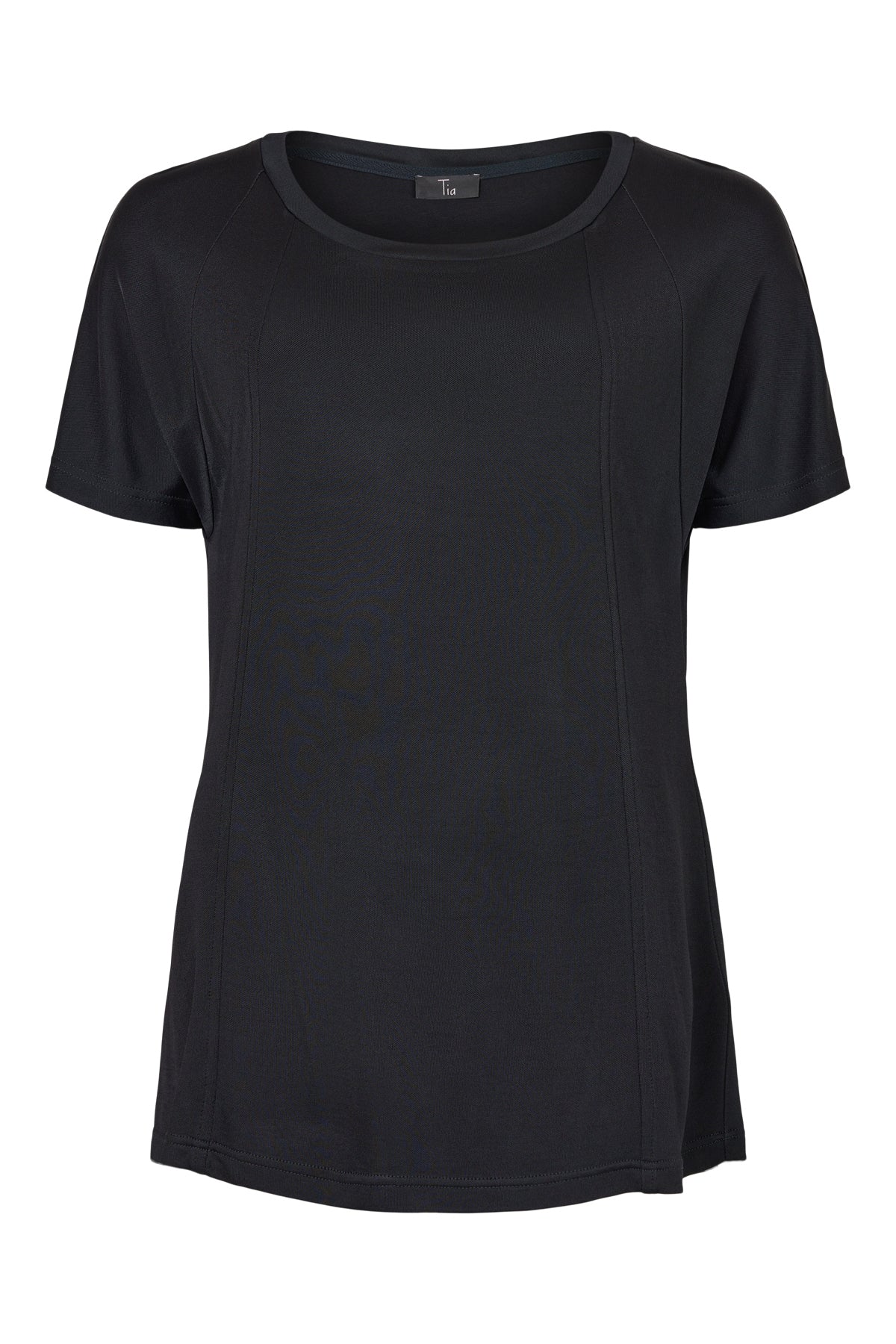 Tia - Marica, mjúkur og þægilegur stuttermabolur með rúnuðu hálsmáli, saumum að framan og smá A-sniði.