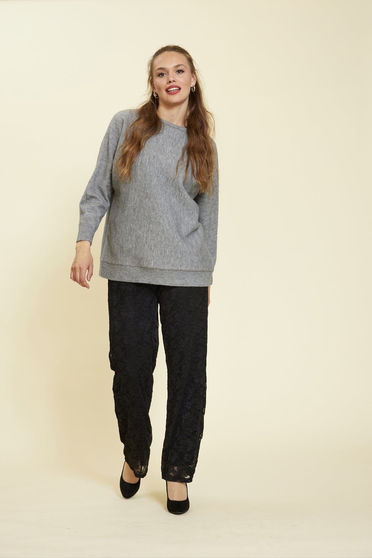 ZeZe - Ilena flottar og sparilegar blúndu buxur. Teygja í mitti, ná vel upp, beinar niður, full sídd. Fullkomnar við fallega blússu eða peysu.
