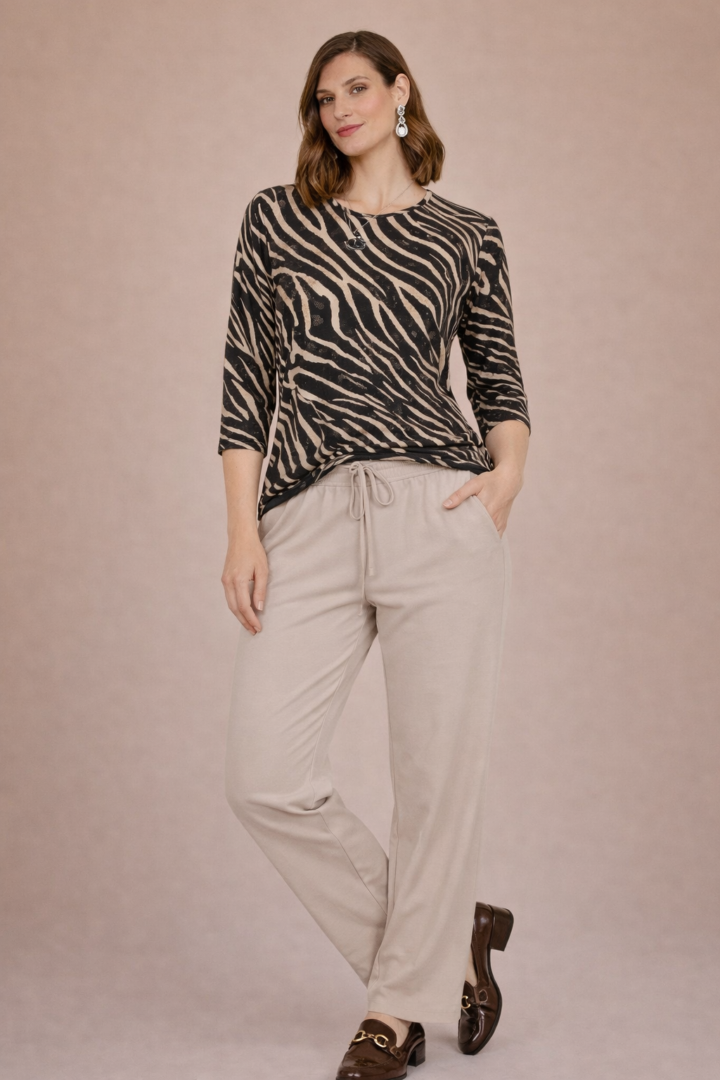 Bassini - Madalyn, sparilegur kvartermabolur með rúnuðu hálsmáli, flottu dýramynstri og fíngerð glitter í efni. Smá klauf á hliðum, gott efni sem fellur fallega.