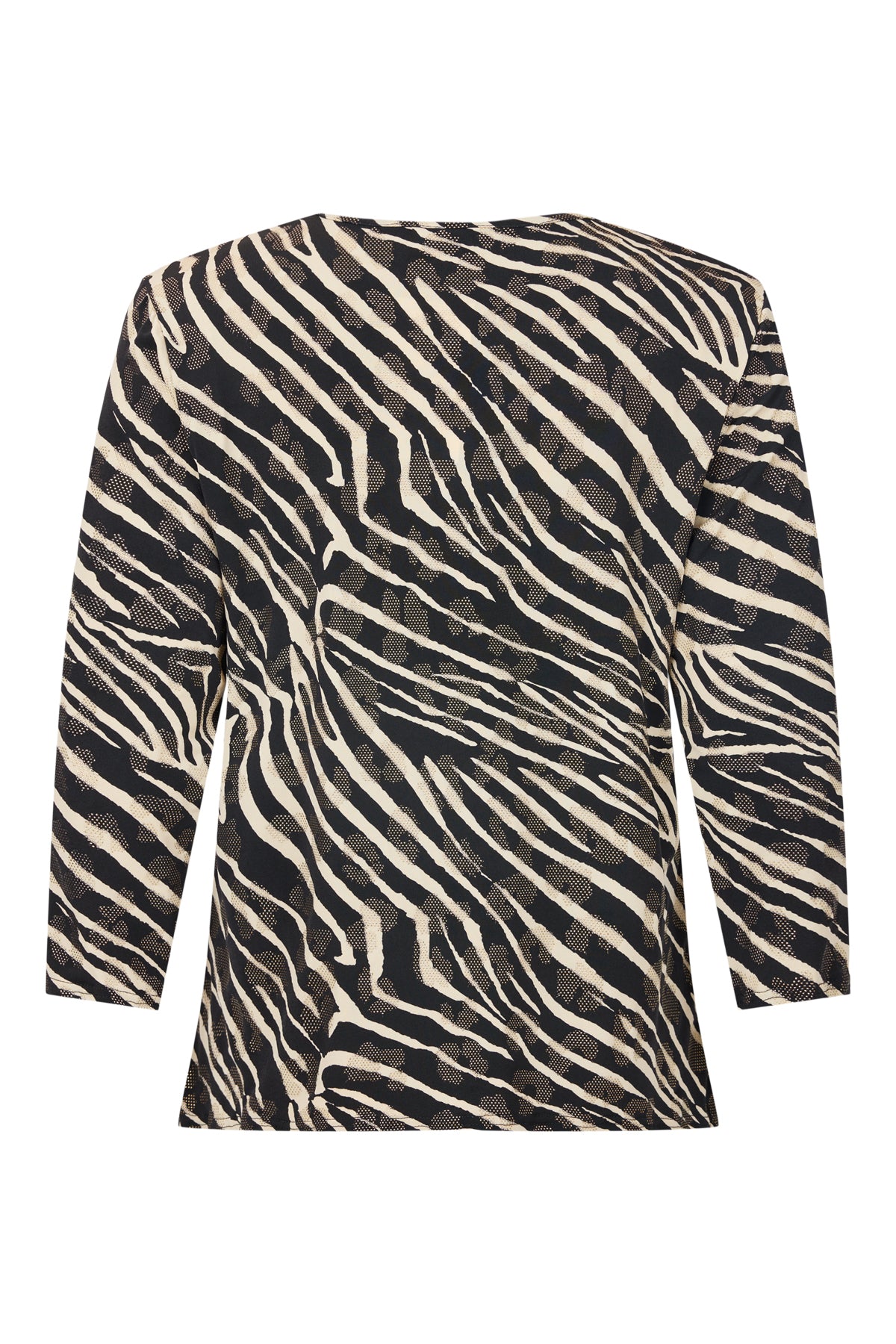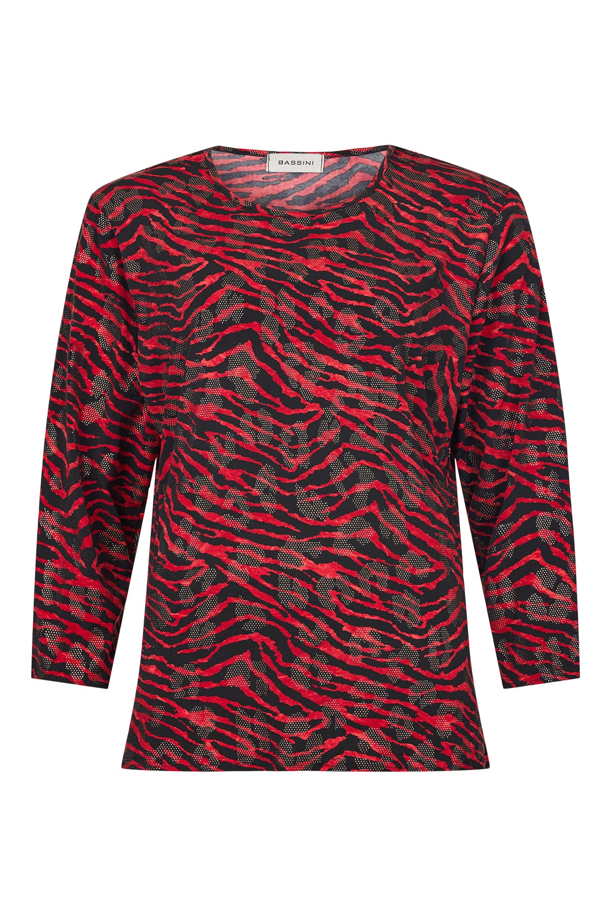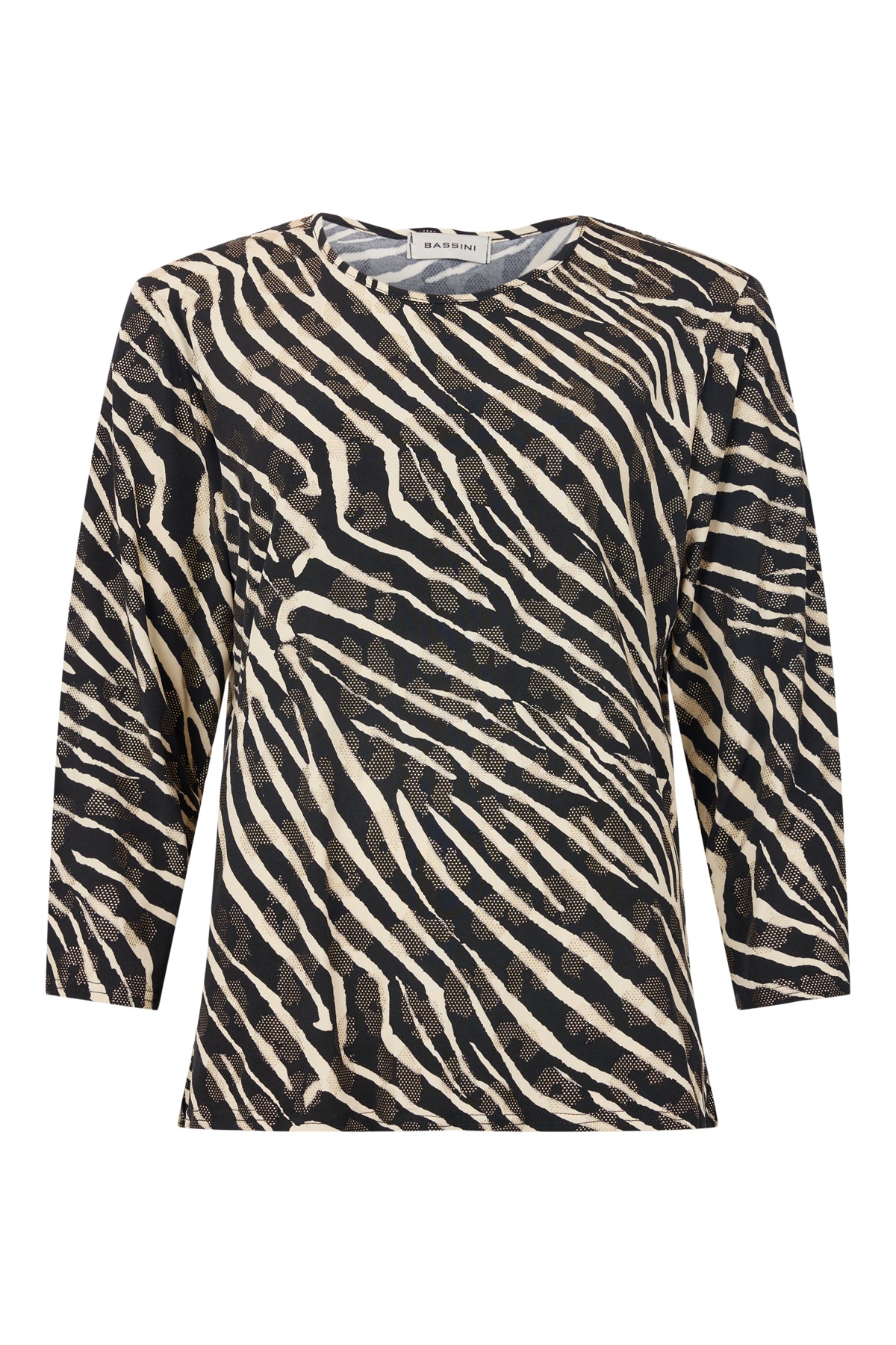 Bassini - Madalyn, sparilegur kvartermabolur með rúnuðu hálsmáli, flottu dýramynstri og fíngerðum gylltum skrautsteinum. Smá klauf á hliðum, gott efni sem fellur fallega.