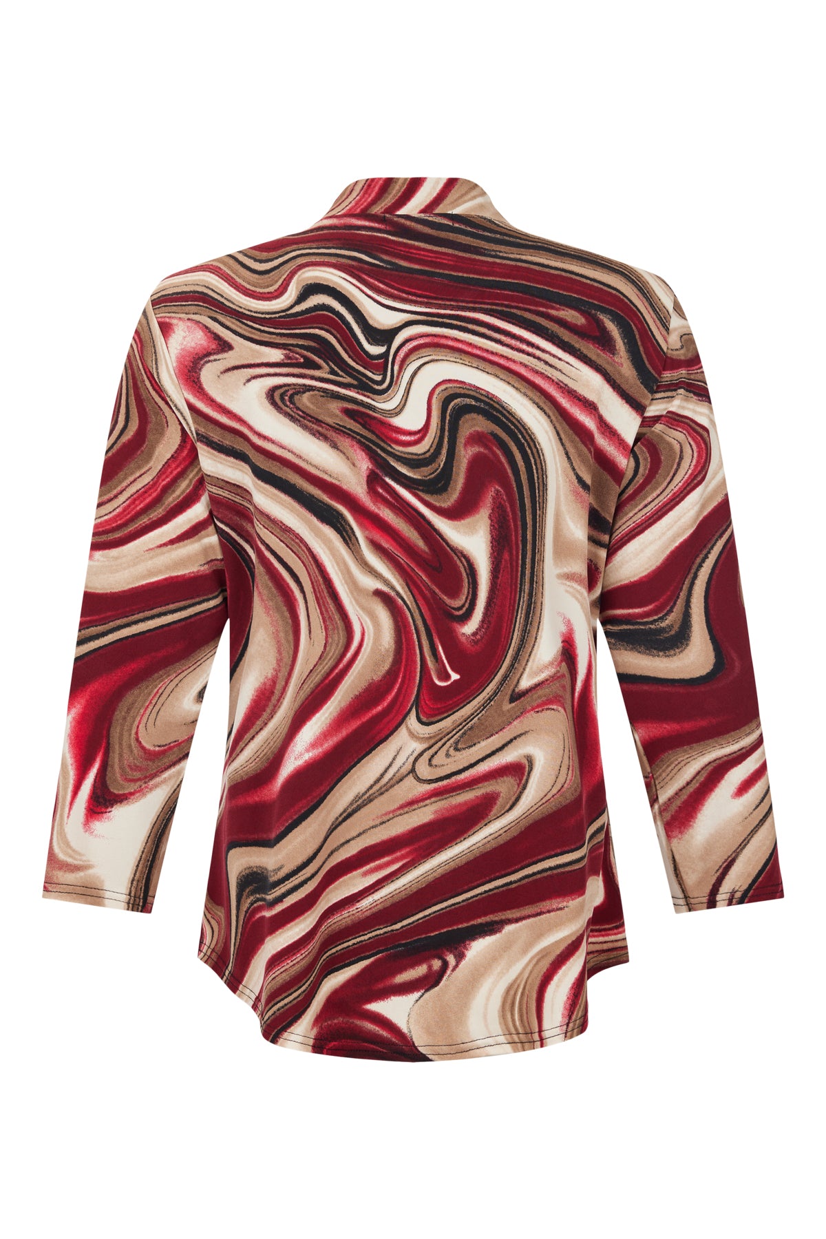 Bassini - Shelby flott og sparileg blússa með fallegu mynstri. Kragi og V-hálsmál, hneppt alla leið niður, kvartermar, rúnuð að neðan. Létt og þægileg og hægt að vera í undir jakka eða peysu eða bara ein og sér. Flott bæði sem hversdags og betri flík og passar vel með hverju sem er.
