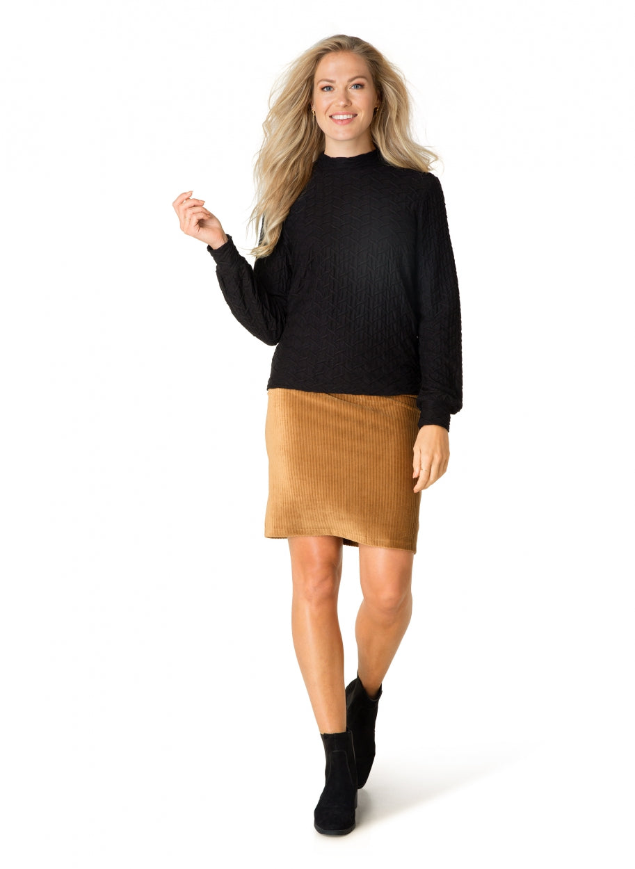 Fallegt mynstur í efni sem gefur skemmtilega hreyfingu. Passar vel við öll tækifæri, virkar líka undir létta jakka.
