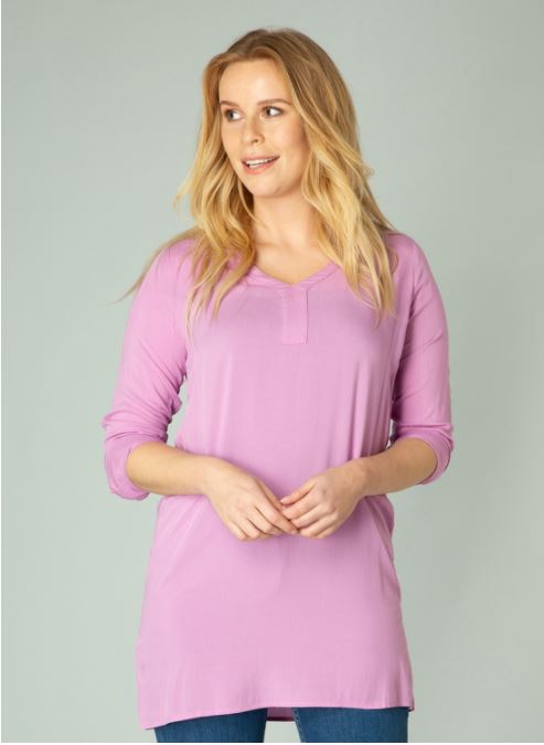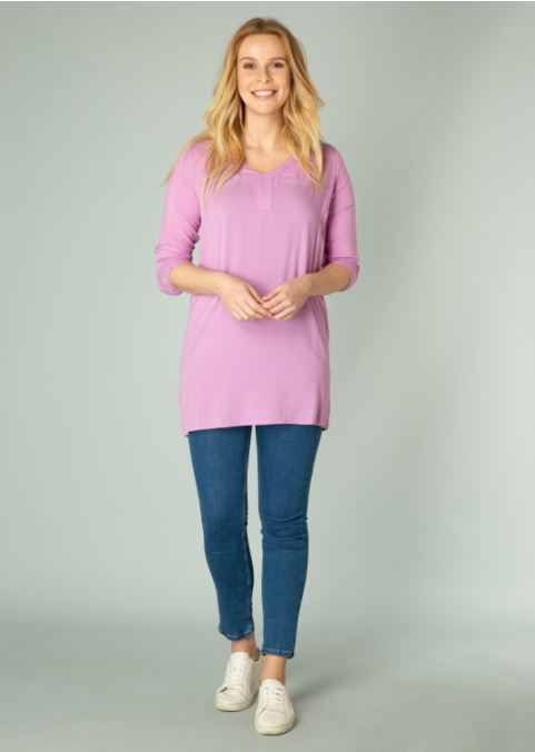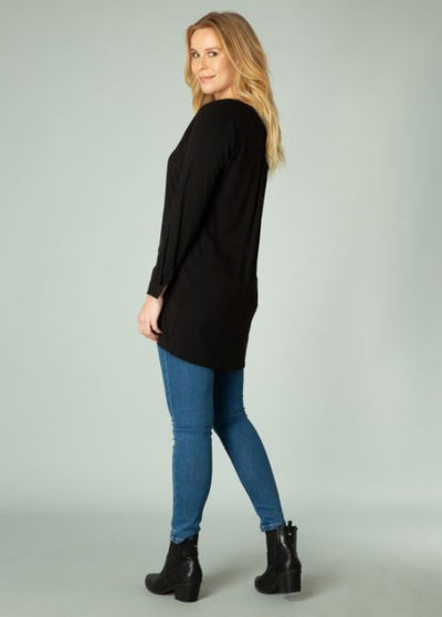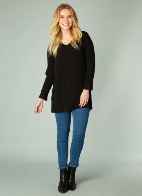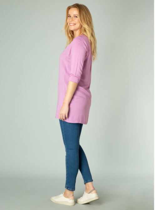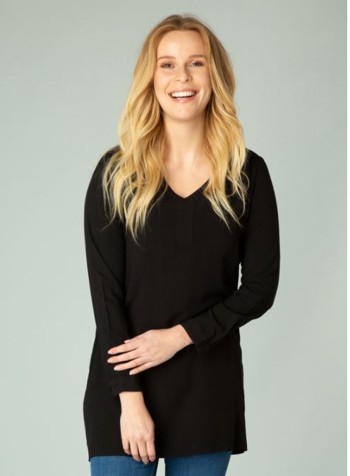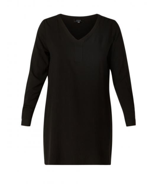 ES&SY - Natalia, létt og þægileg, síð blússa með V-hálsmáli og löngum ermum með tölu neðst.