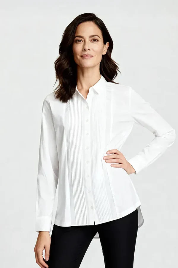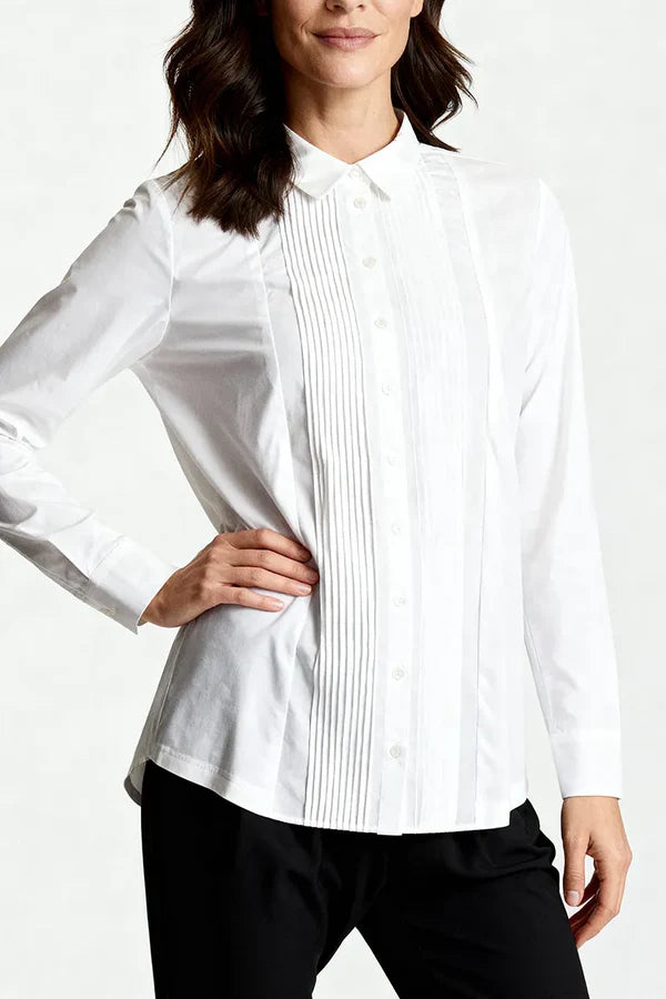 Habella - Londyn flott og sparileg skyrta. Skyrtukragi, plíseruð að framan, hneppt alla leið niður, langar ermar. Falleg skyrta sem passar vel með buxum eða pilsi hvort sem það er hversdags eða spari.