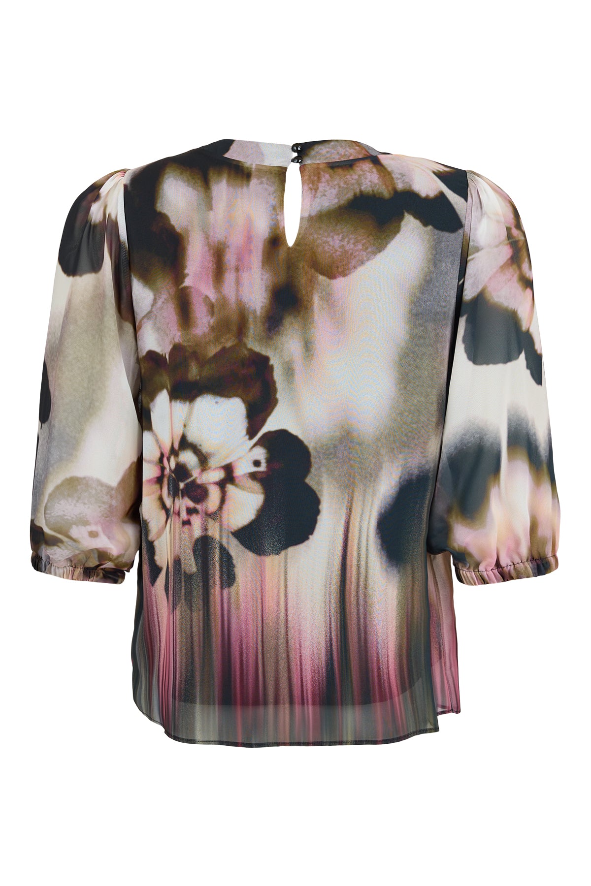 Molly Jo - Lilibeth flottur og vandaður sparitoppur með fallegu blómamynstri. Kvartermar með teygju, rúnað hálsmál, keyhole op að aftan með tölum. Flottur bæði við buxur eða pils.