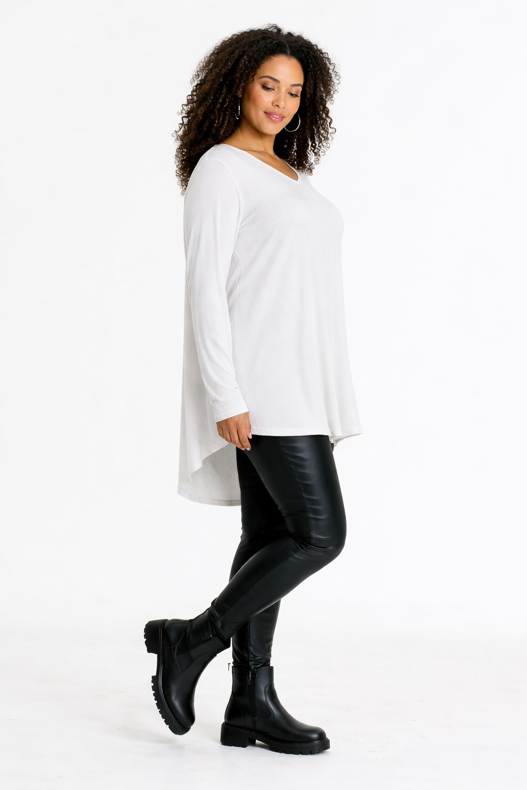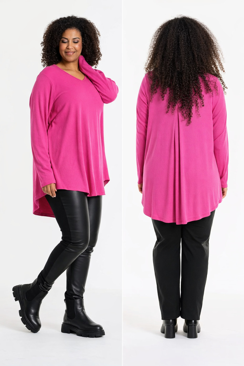 Studio - Flottur og þægilegur langerma bolur með V-hálsmáli úr riffluðu efni.