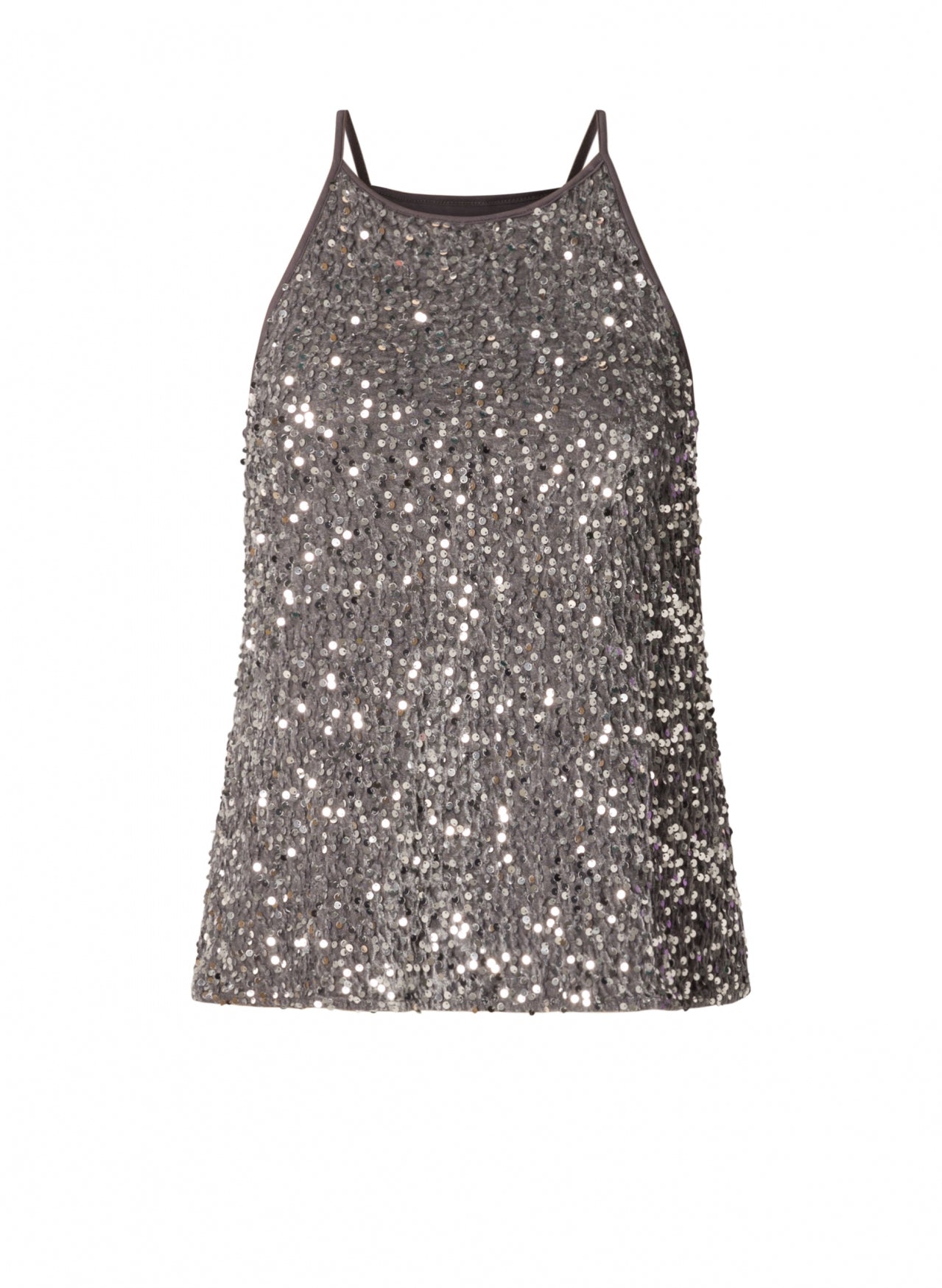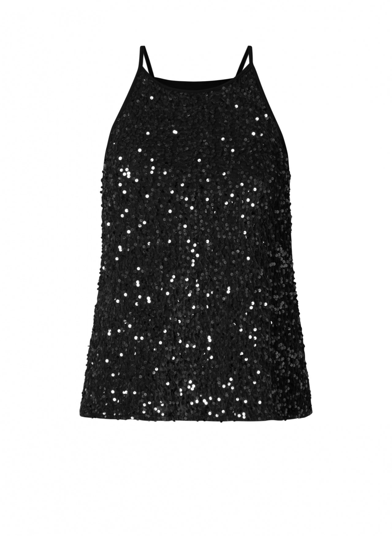 YestA - Tineke pallíettu toppur með mjóum hlýrum. Tilvalinn undir opnar blússur og peysur eða einn og sér.