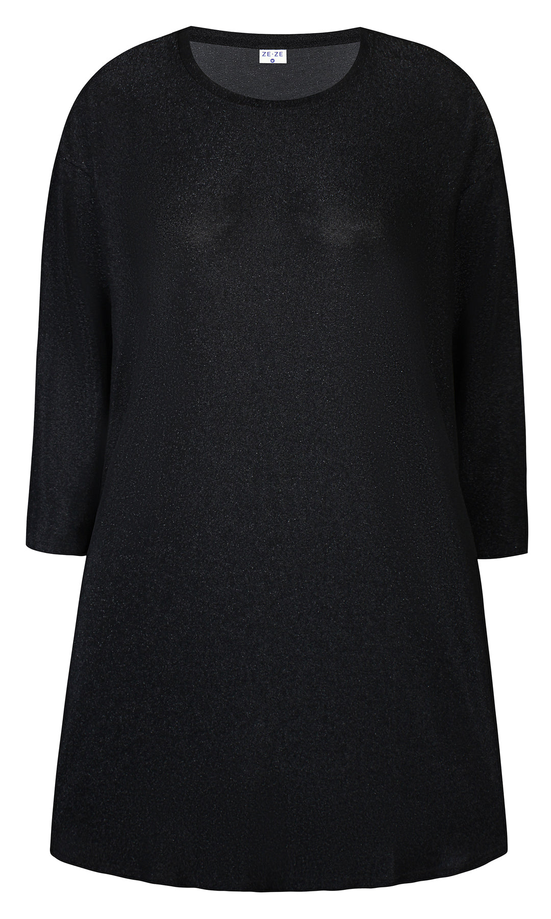 Ze-Ze - Ira falleg og sparileg glimmer tunika. Rúnað hálsmál, langar ermar og lurexefni. Fullkominn fyrir hátíðarnar.