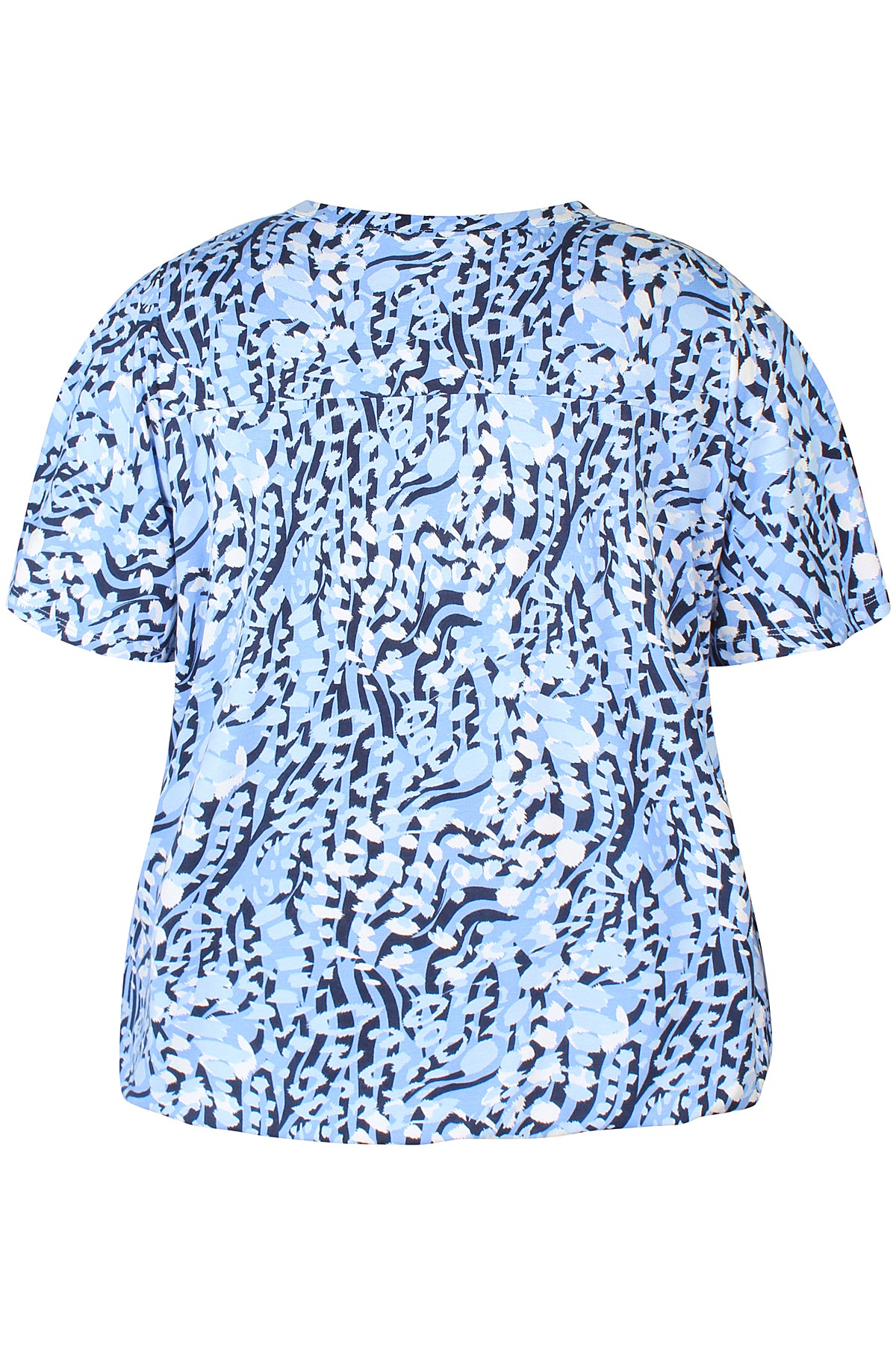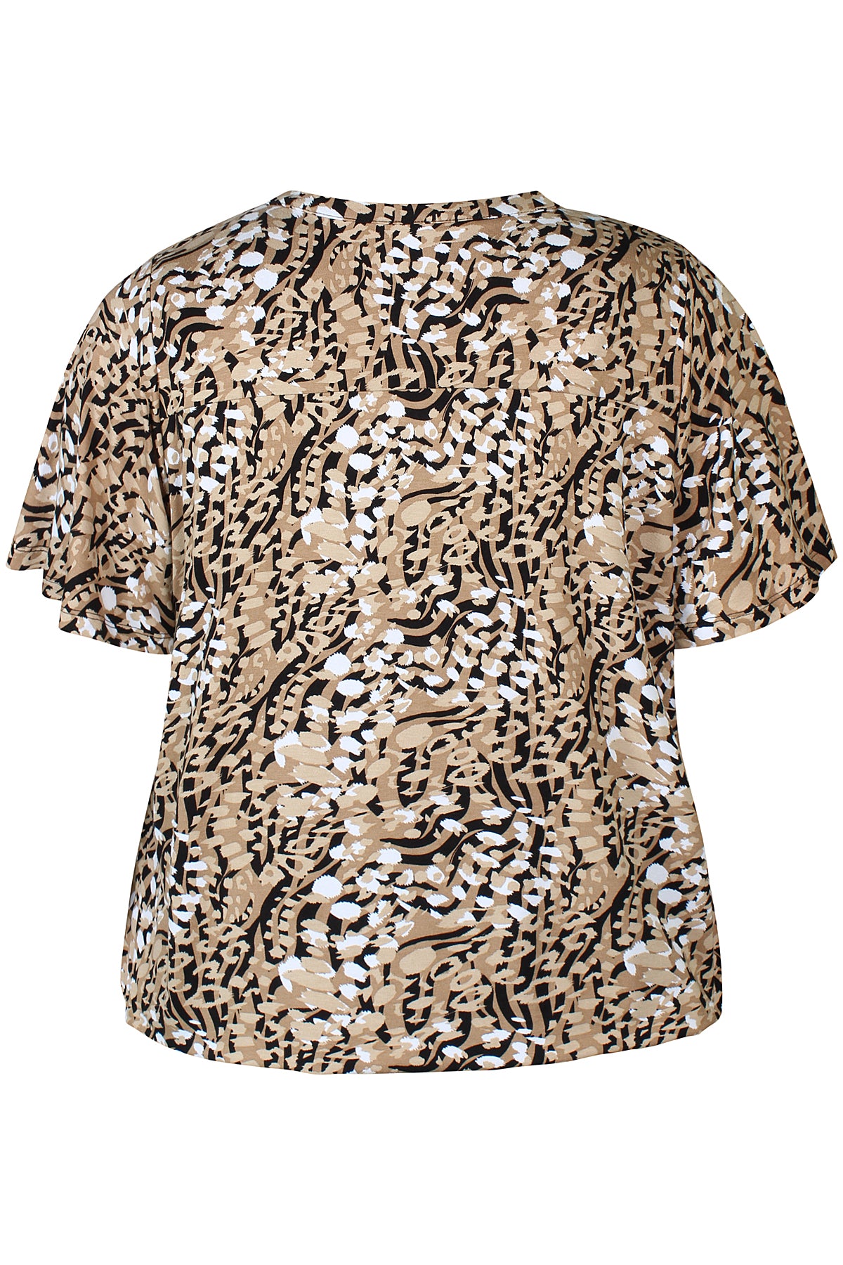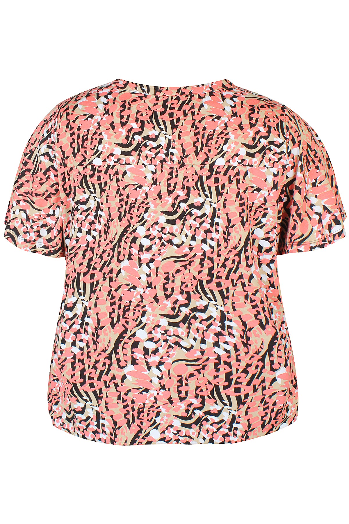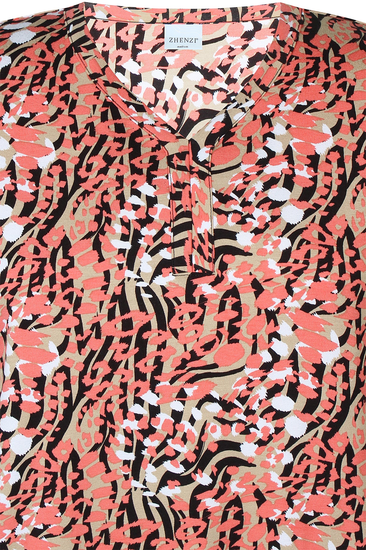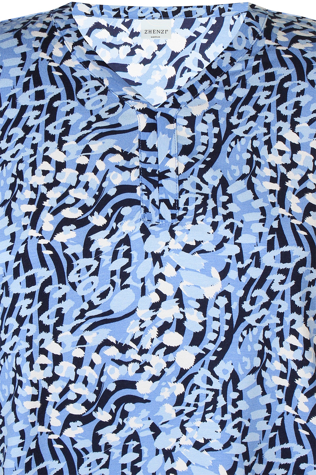 Zhenzi - Fien sætur stuttermabolur úr viscose efni með fallegu mynstri. V-hálsmál og stuttar ermar, tekinn saman að neðan með teygju. Flott bæði sem hversdags og betri flík og passar vel með hverju sem er.