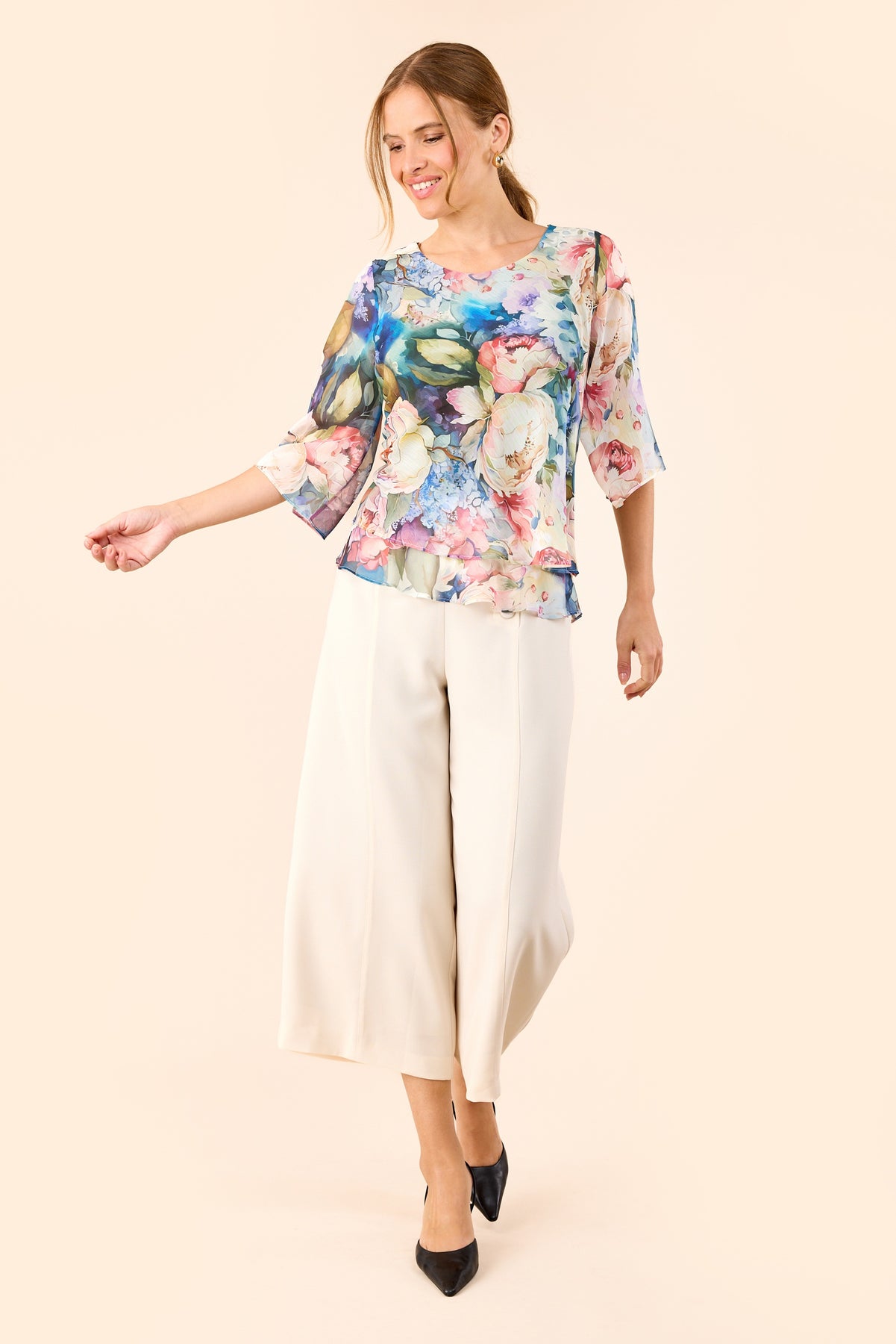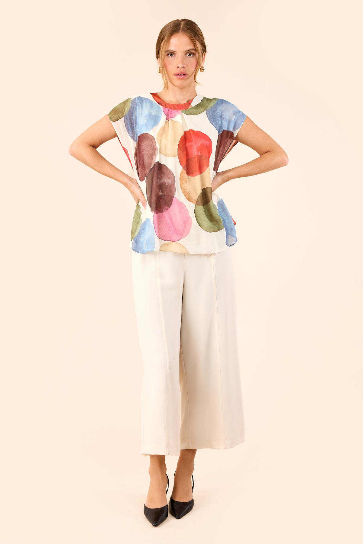 Molly Jo - Nadine, sparilegar og þægilegar, víðar buxur, með streng í mitti með teygju að aftan og vösum með 3 skrauttölum.