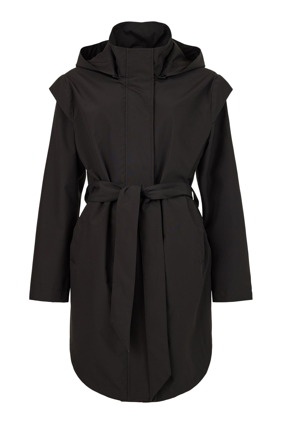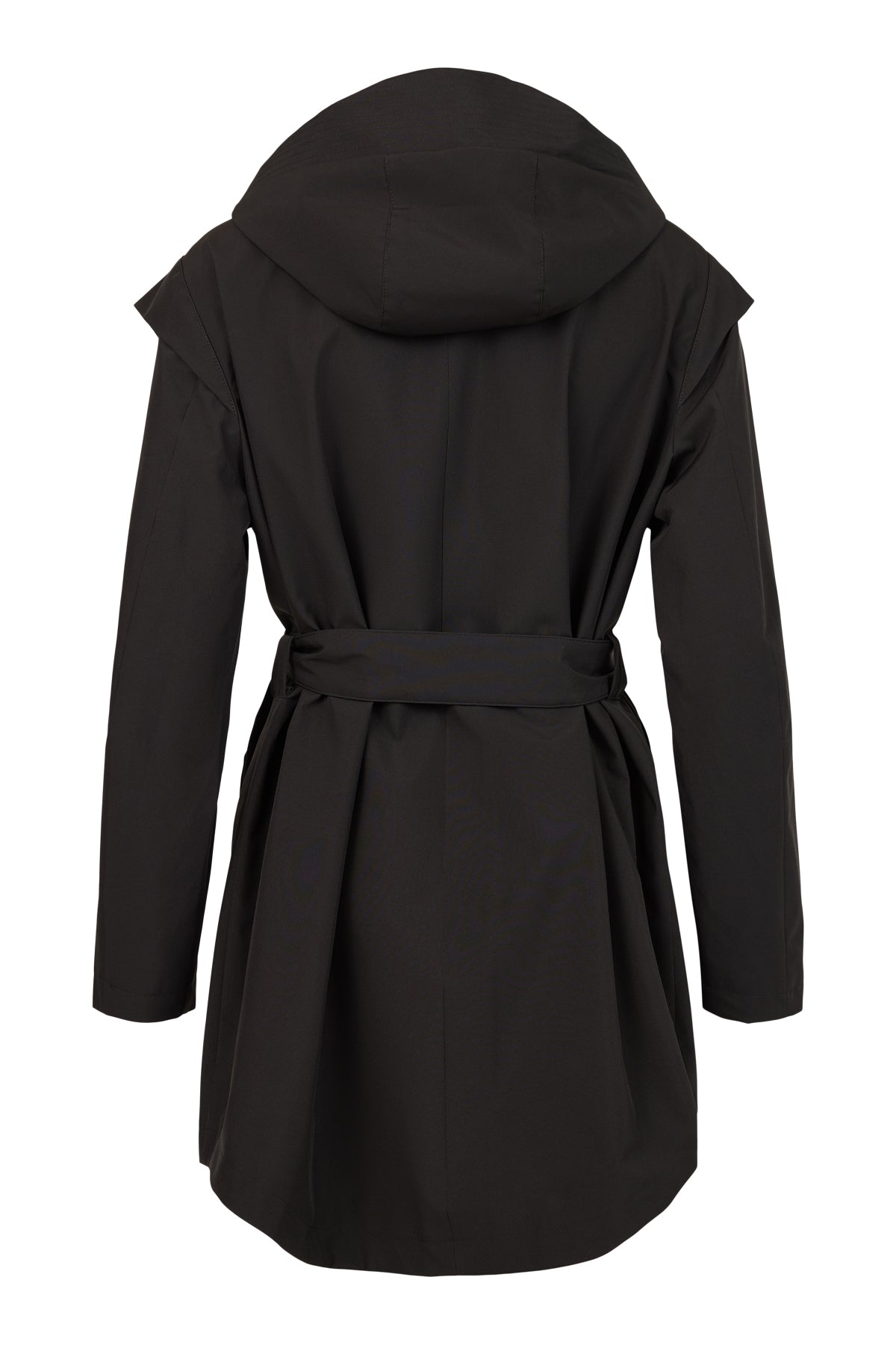 Normann - Darla, regnjakki úr mjúku og lipru efni, renndur og smelltur að framan með góðum vösum ásamt innan á vasa, laus hetta með skyggni sem hægt er að bretta upp og belti.