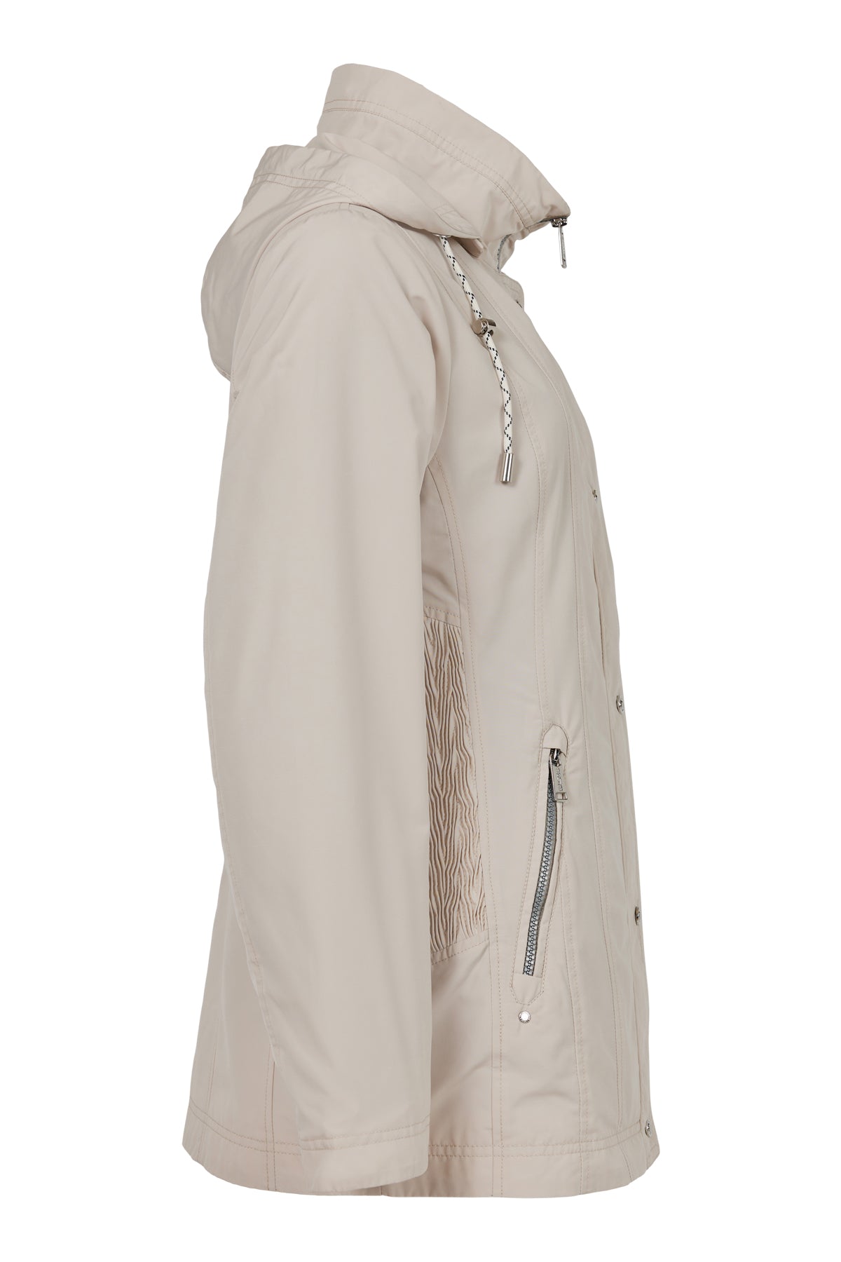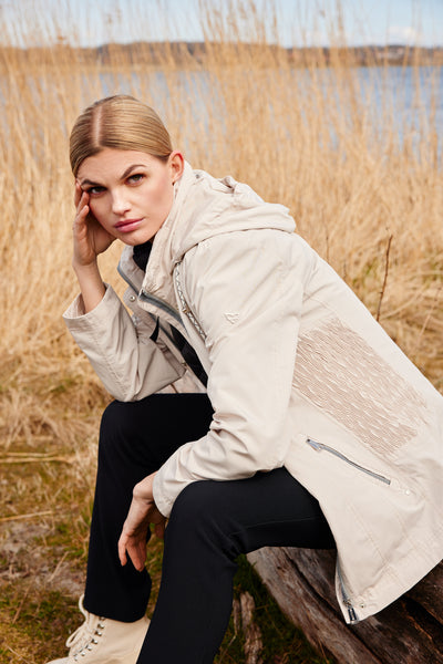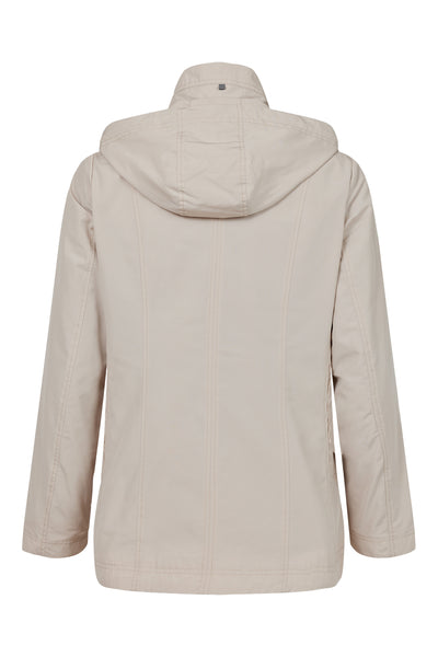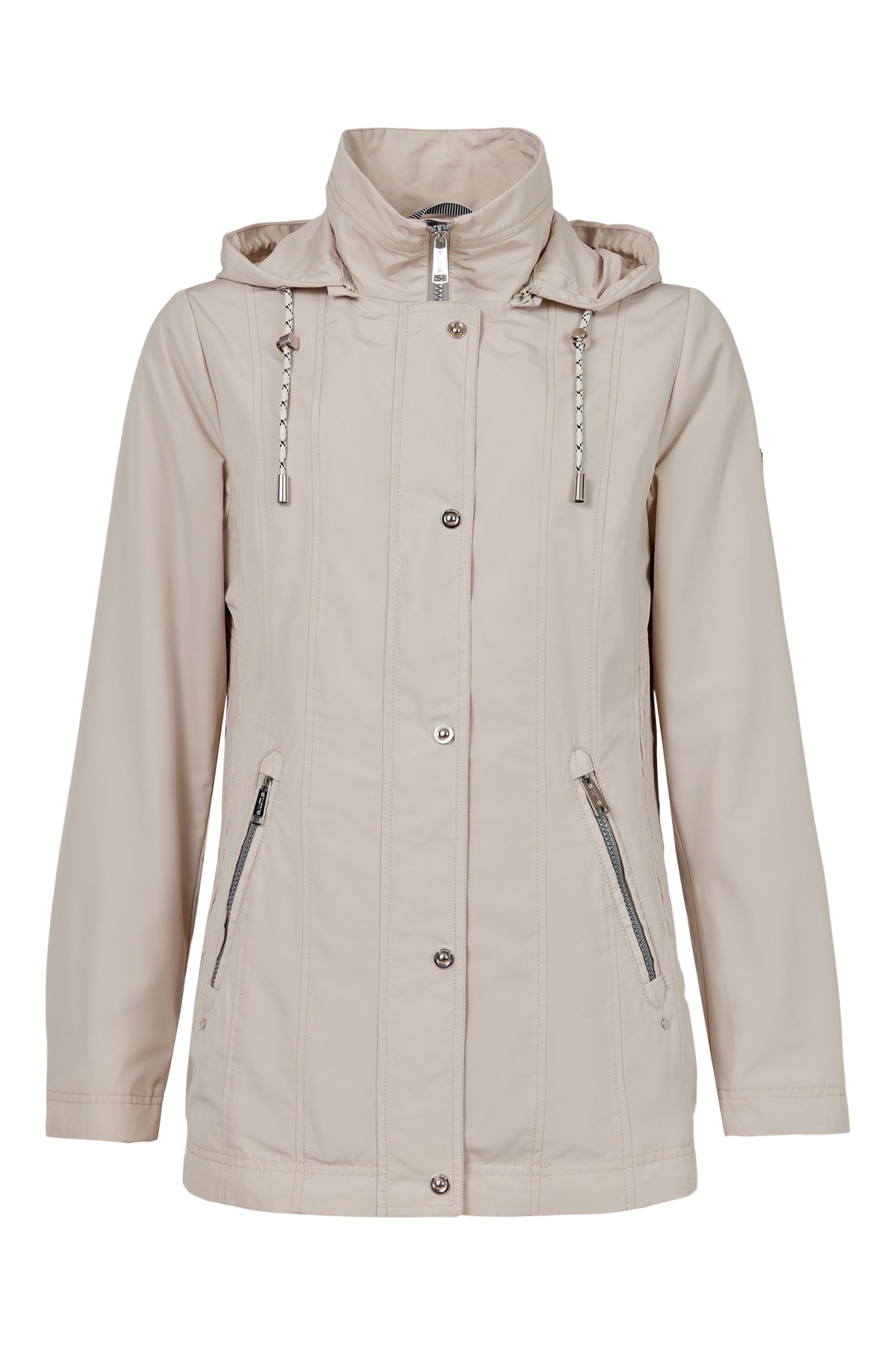 Frandsen léttur sumarjakki með hettu bæði með reimum sem er hægt að draga saman og hægt að renna af. Bionic finich eco efni sem hrindir frá sér vatni.