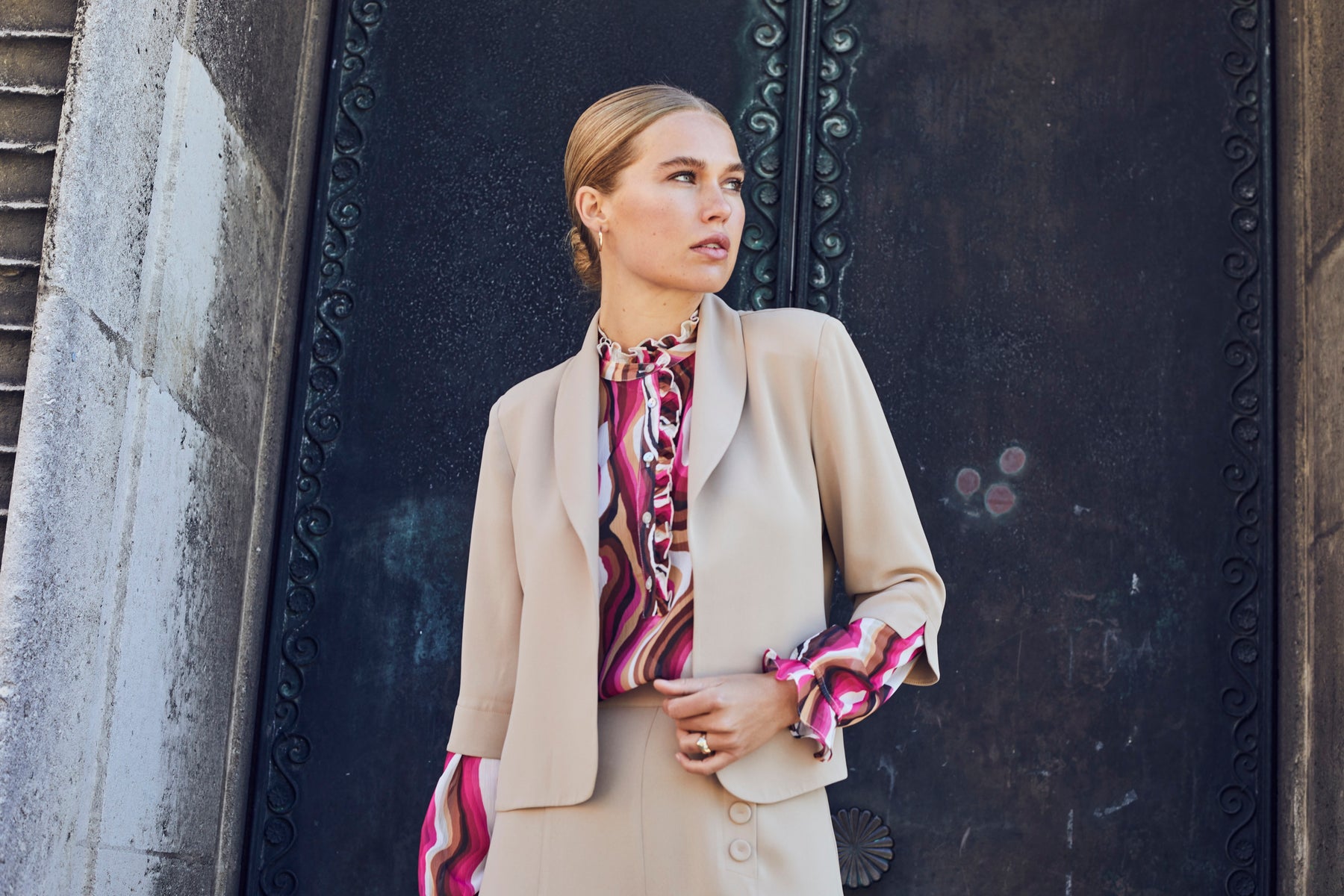 Öll mál eru tekin beint á líkamanum. Mælingarnar miðast við meðalhæð upp á 170 cm. Við mælum með að þú hafir einn fingur milli líkama og málbandar – þannig tryggirðu að flíkin sitji þægilega án þess að þrengja að.