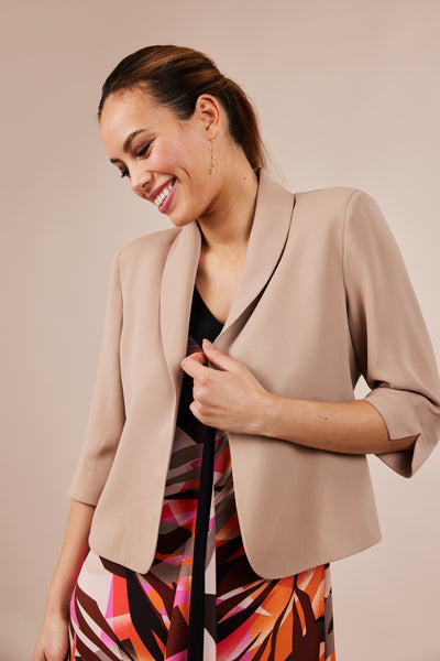Molly Jo - Fallegur og mjúkur stuttur bolero jakki með kvartermum. Smá klauf á ermum, Flottur jakki fullkominn yfir kjóla og túnikur.