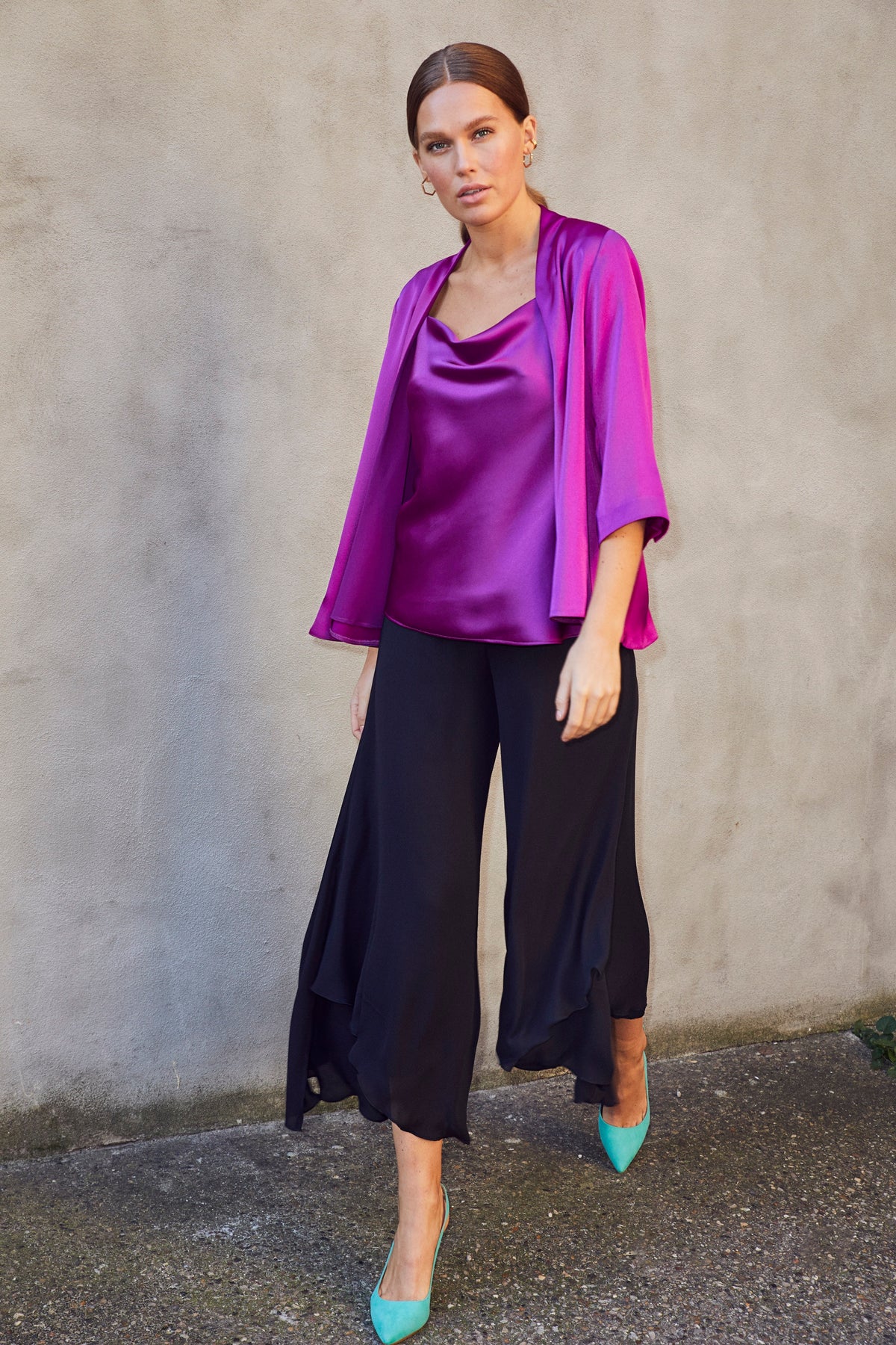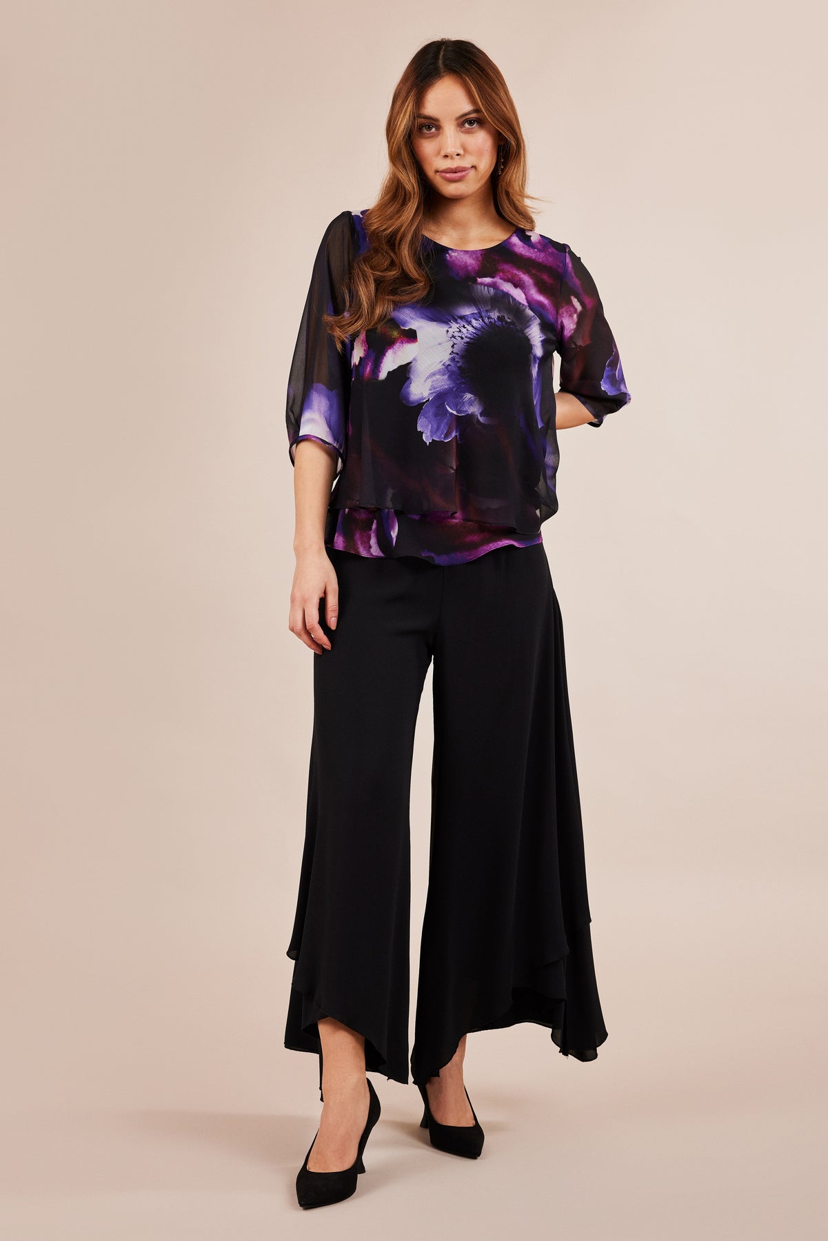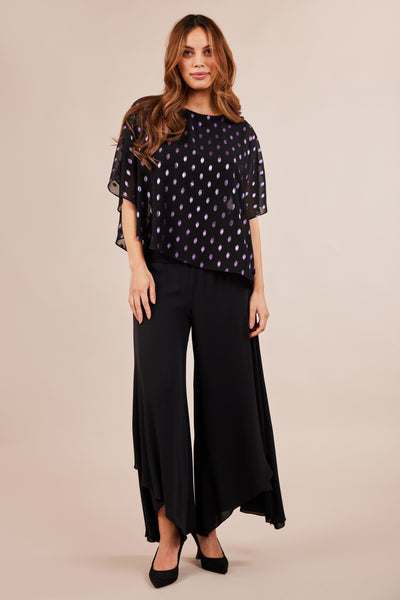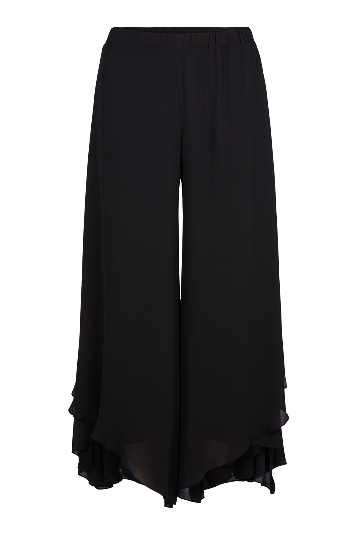 Sparilegar og þægilegar, víðar buxur frá Molly Jo með streng, rennilás á hliðinni og undirbuxum. Ytra efni er með klauf og flæðir vel. Buxurnar eru víðar niður og passa vel fyrir þær sem þurfa mikla læra/kálfa vídd.