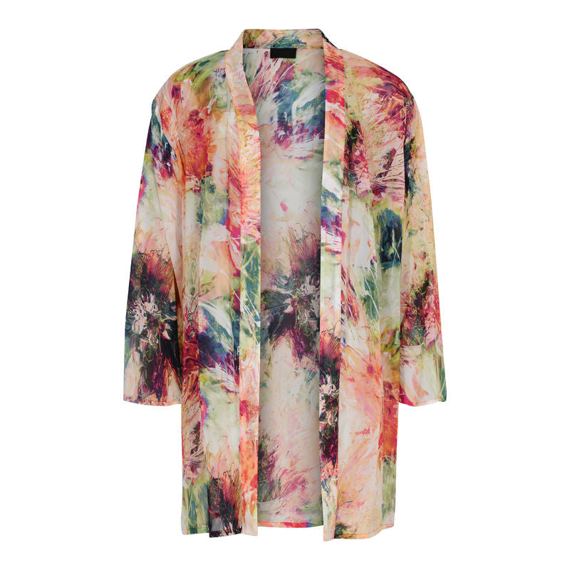 Q'neel - Ashley sparilegt kímanó með fínlegri áferð og fallegu mynstri, 3/4 ermasídd. Flott yfir allskonar kjóla og tunikur.