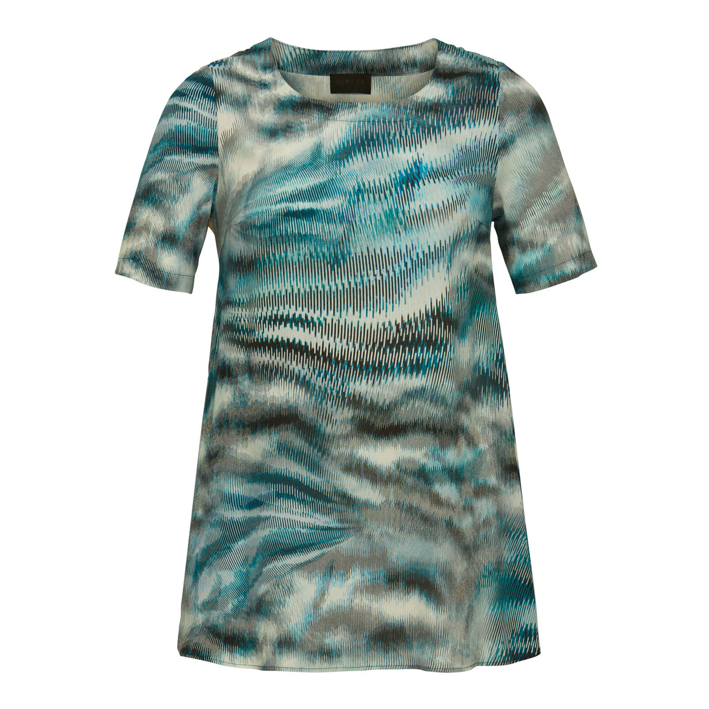 Q'Neel - Astros, Létt og vönduð stuttermatunika með skemmtilegu mynstri og rúnuðu hálsmáli. Gott A-snið sem víkkar að neðan og með saum í baki. Gengur bæði spari og hversdags.