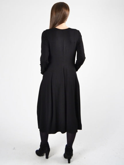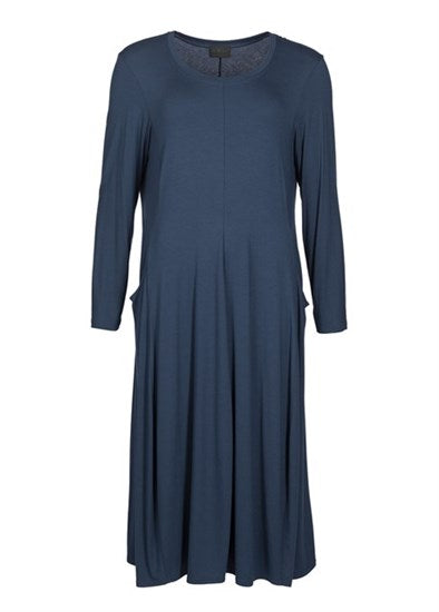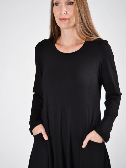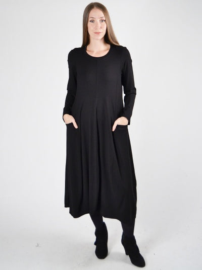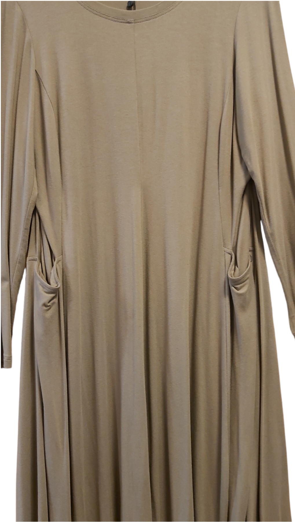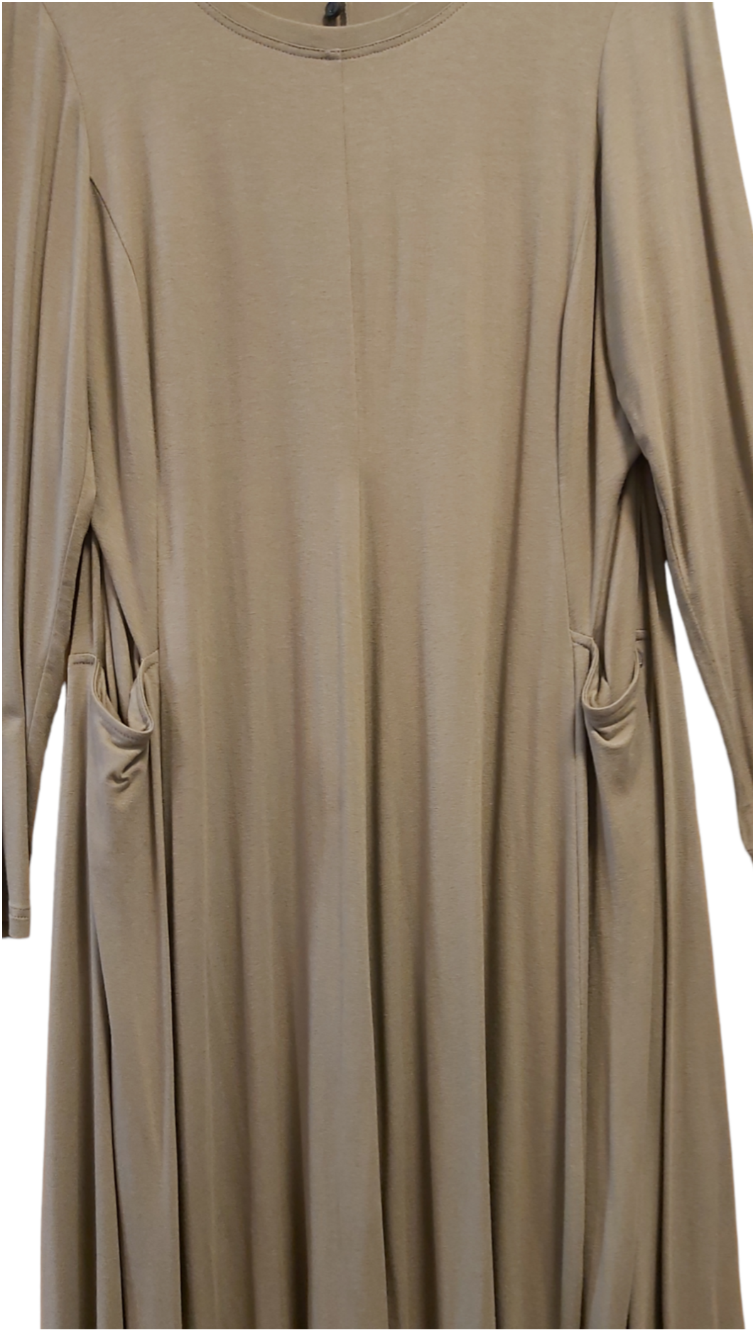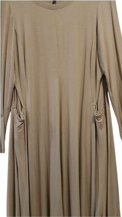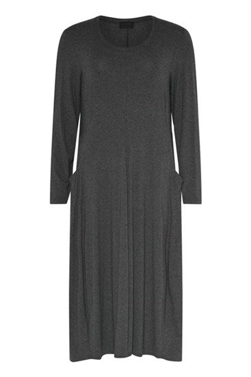 Látlaus hálfsíður langerma kjóll frá Q'neel/Noen, með rúnuðu hálsmáli og góðum vösum.