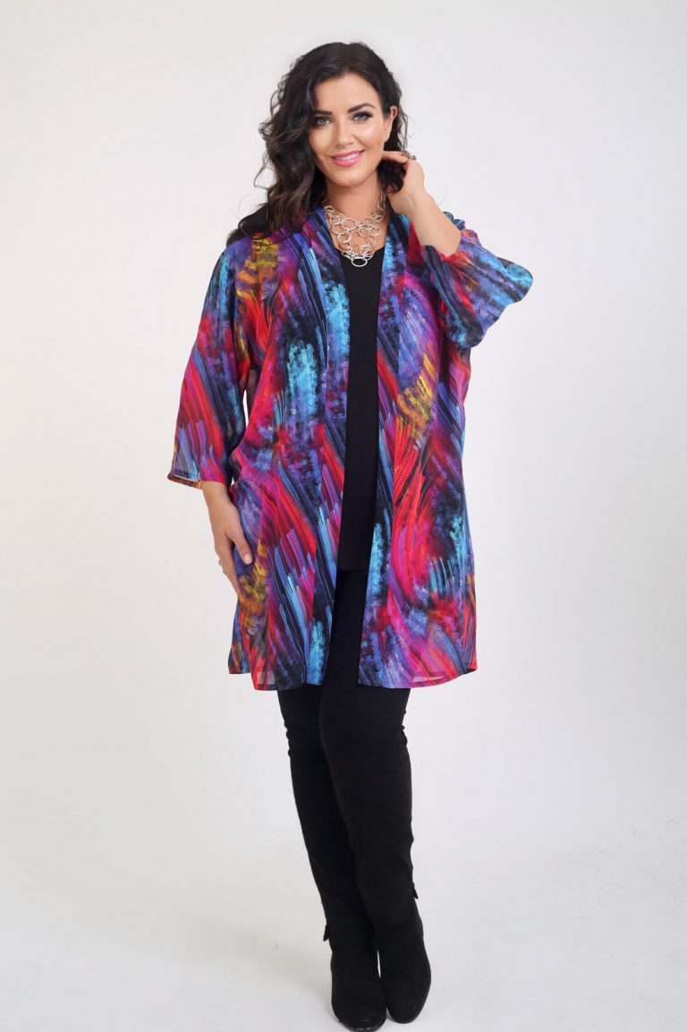 Q'neel - Remi sparilegt ponsjó með fínlegri áferð og fallegu mynstri, 3/4 ermasídd. Flott yfir allskonar kjóla og tunikur.