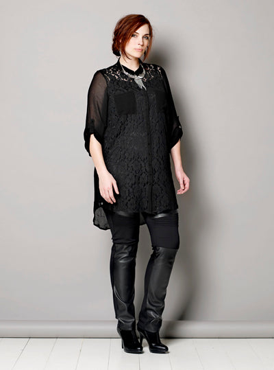Q-Neel - Sasha flottar og vandaðar pleðurbuxur, úr þéttu og endingargóðu efni, gott snið. Frekar beinar niður, háar upp og sitja vel, pleður og rifflað efni að framan.