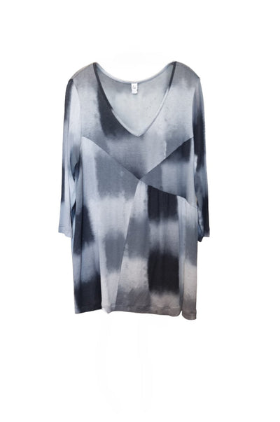 Que - Calliope, Ótrúlega mjúk og létt kvarterma tunika með djúpu V-hálsmáli og látlausu mynstri. Saumar yfir efni brjóta upp mynstur og gefur henni meira líf.