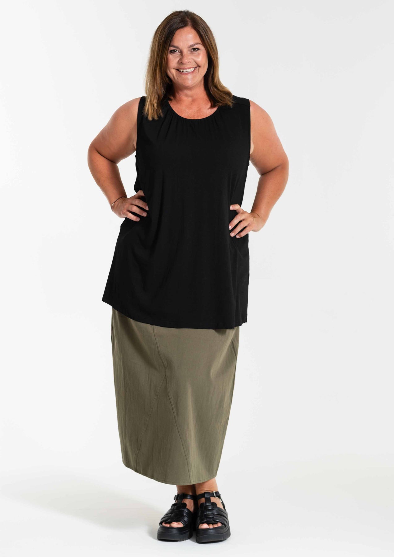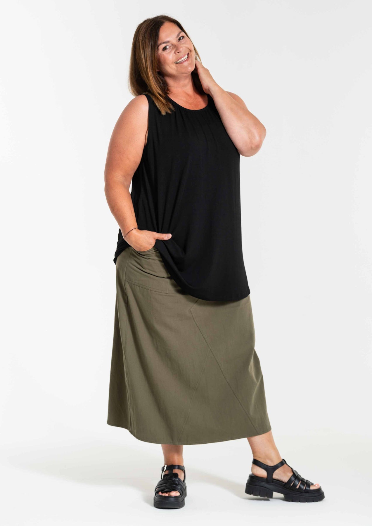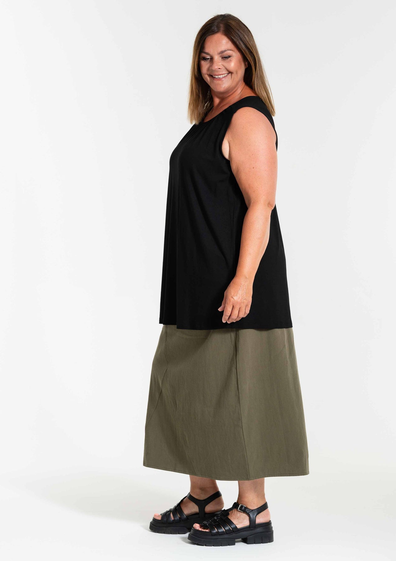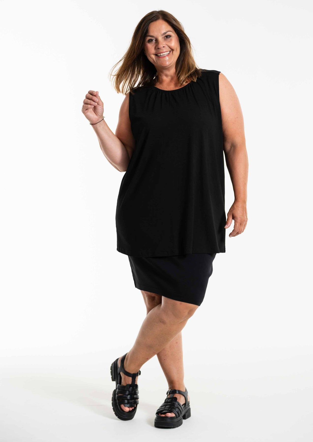 GOZZIP - Flottur toppur með rúnuðu hálsmáli með teygju og A-sniði. Góður undir skyrtur og jakka eða bara einn og sér. Virkar vel bæði spari og hversdags.