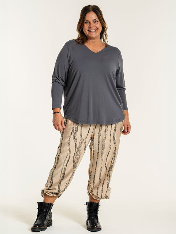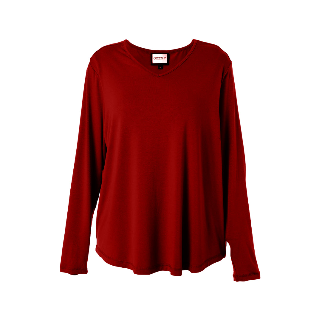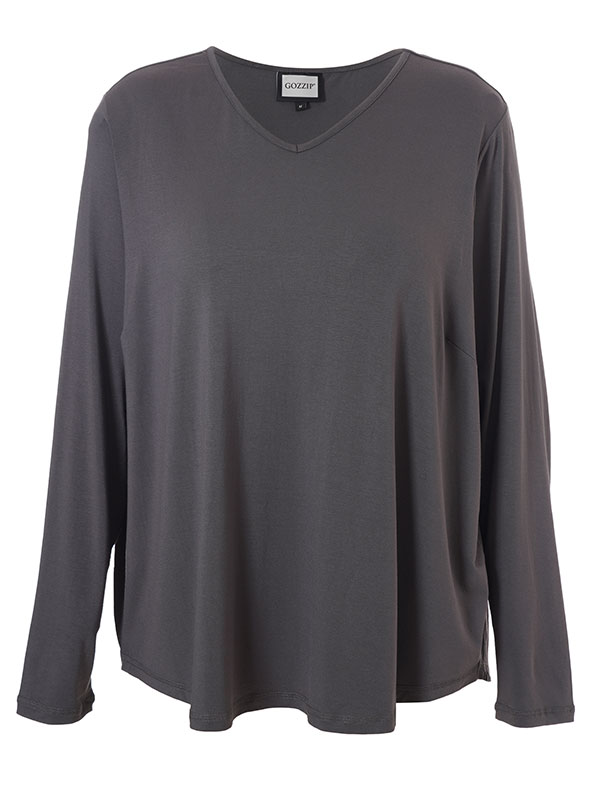 GOZZIP langermabolur úr góðu og þægilegu viskosefni, með V-hálsmáli og löngum ermum, rúnaður að neðan og aðeins síðari að aftan.