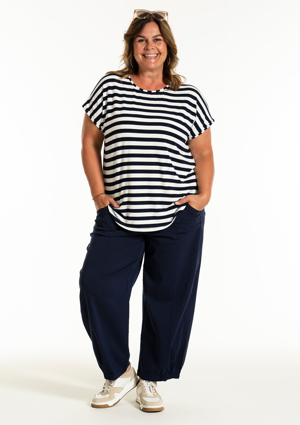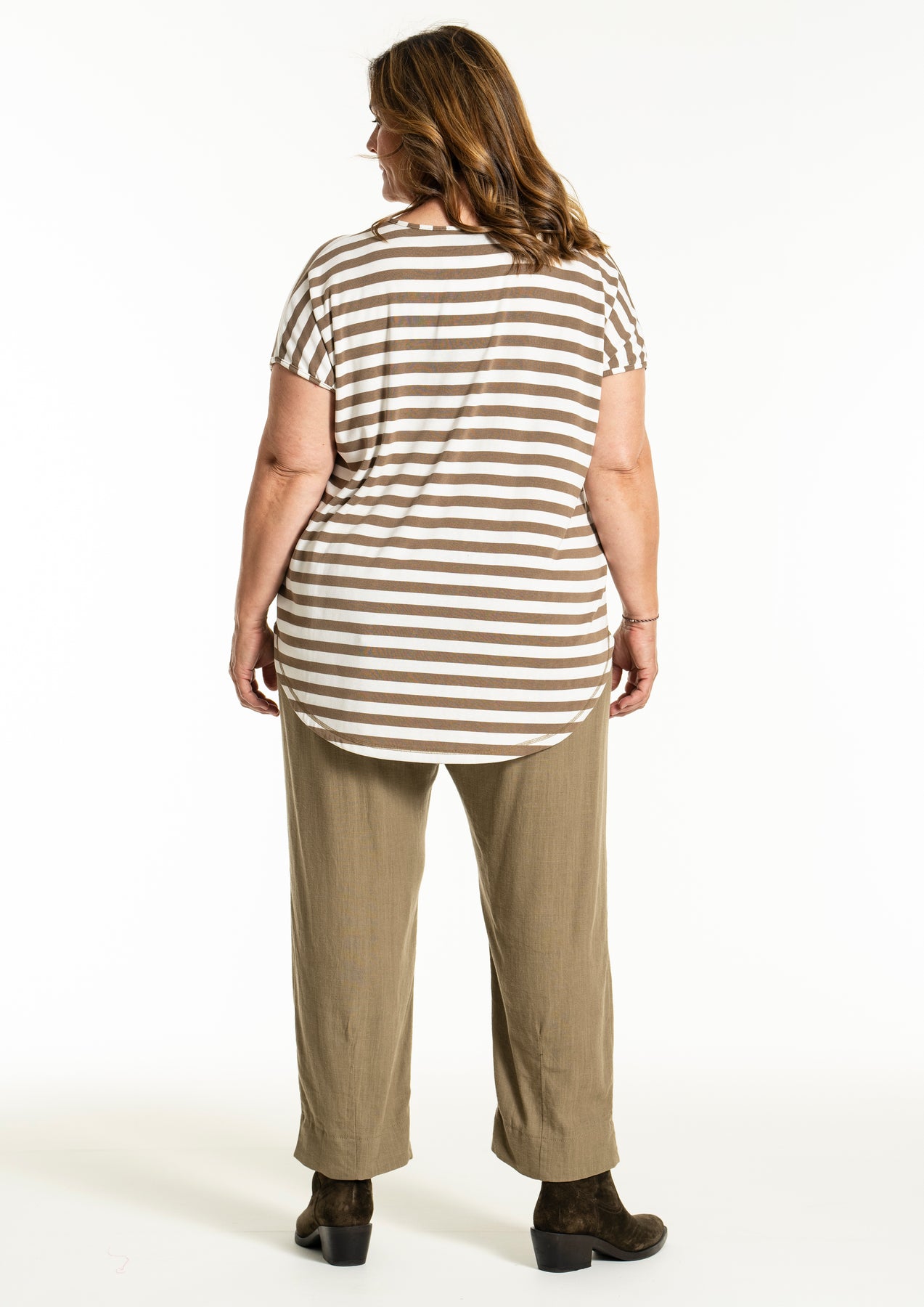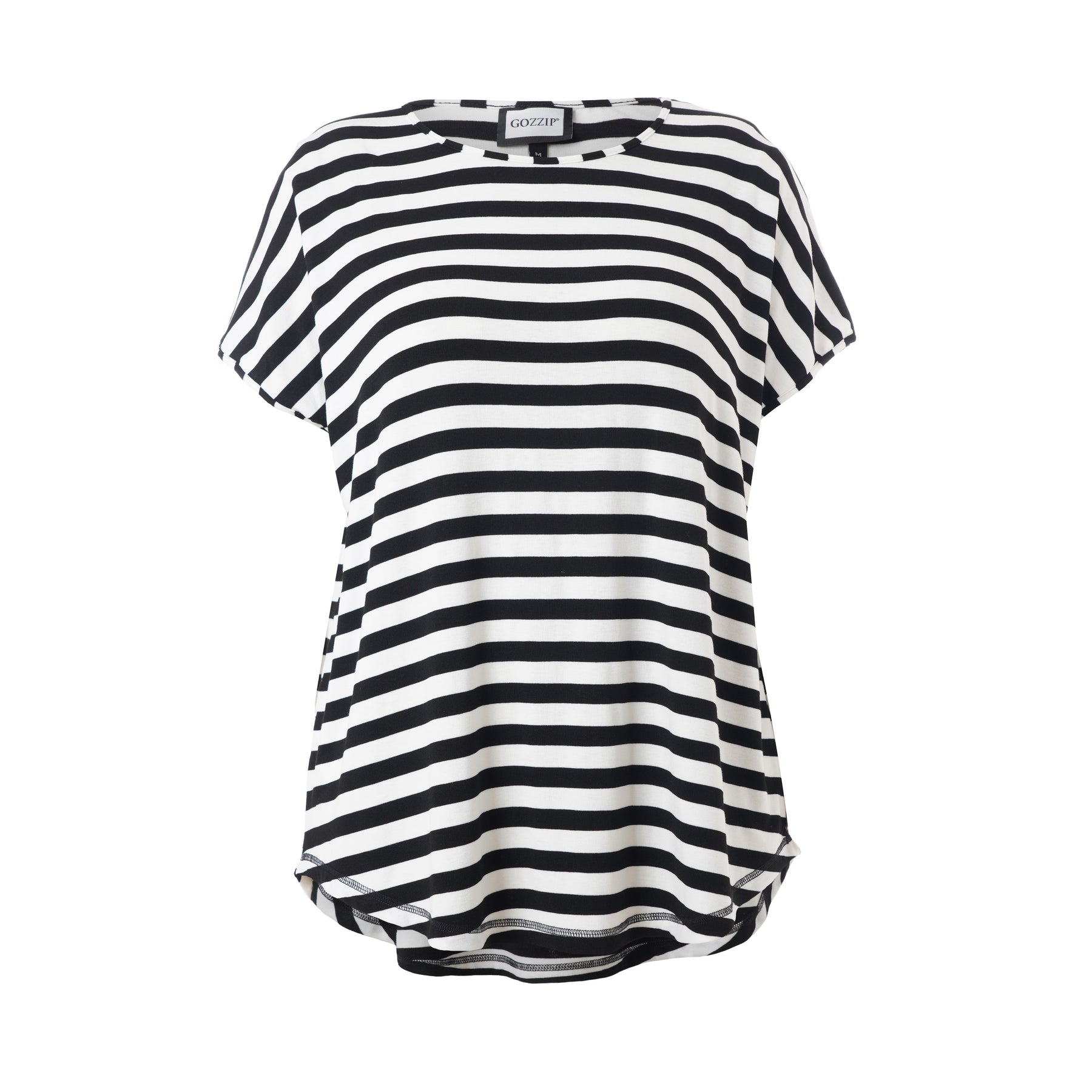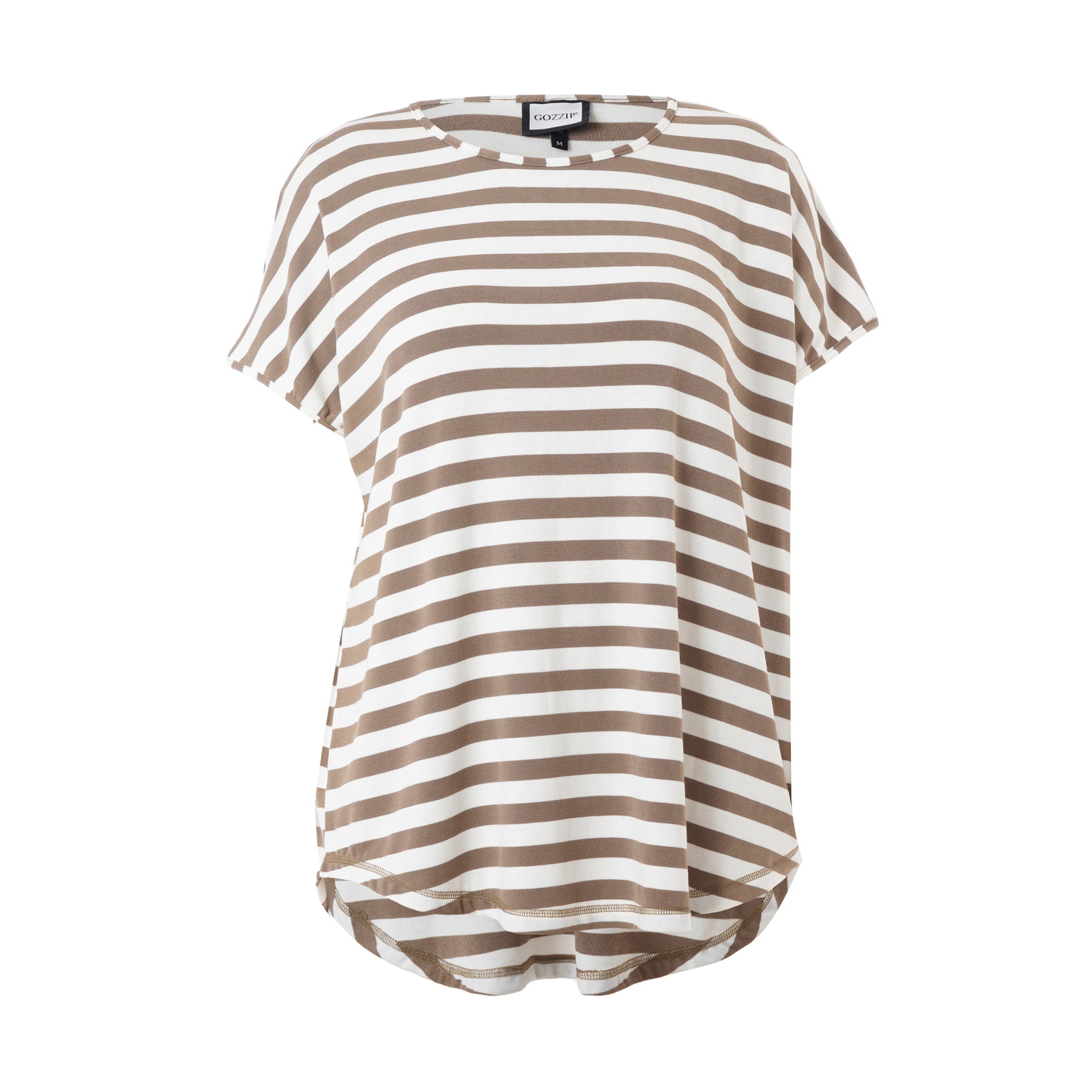 GOZZIP - Gitte röndóttur stuttermabolur. Bolurinn er úr góðu og þægilegu viskosefni, rúnað hálsmál, rúnaður að neðan og örlítið meiri sídd að aftan.