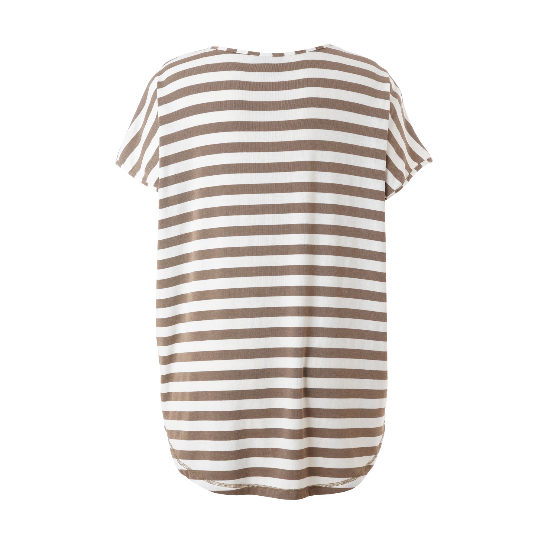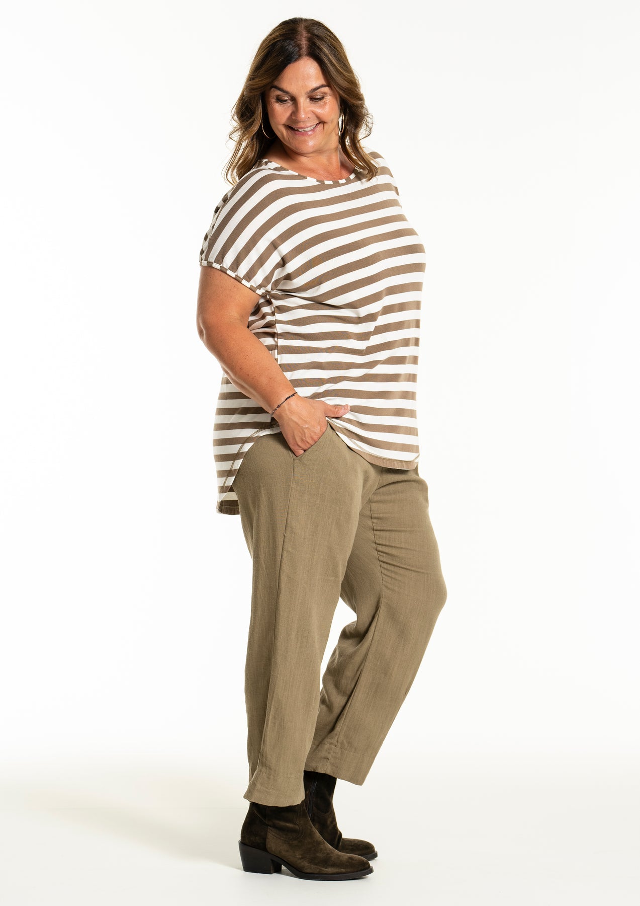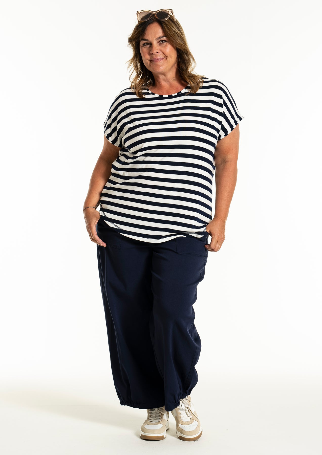 GOZZIP - Gitte röndóttur stuttermabolur. Bolurinn er úr góðu og þægilegu viskosefni, rúnað hálsmál, rúnaður að neðan og örlítið meiri sídd að aftan.