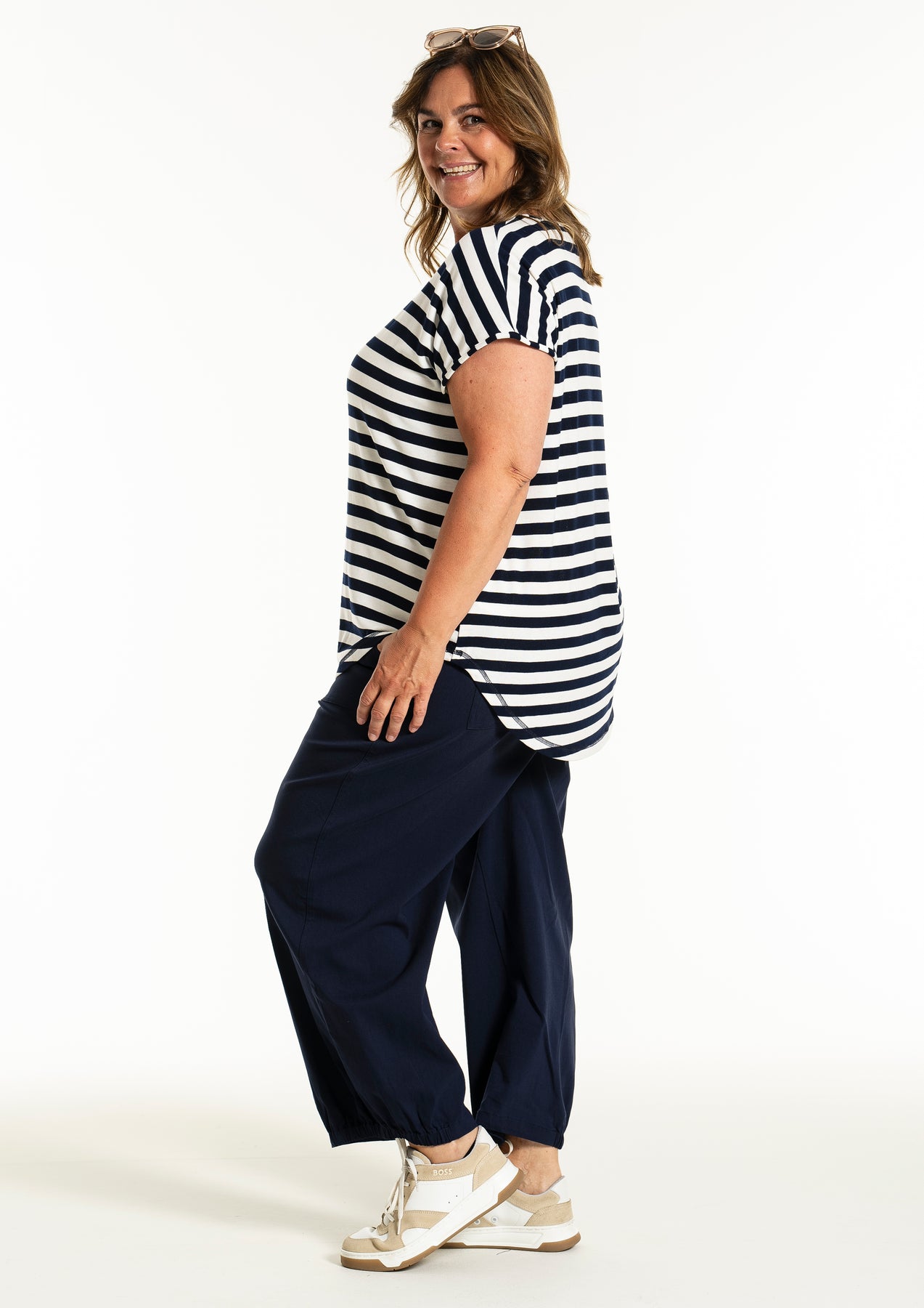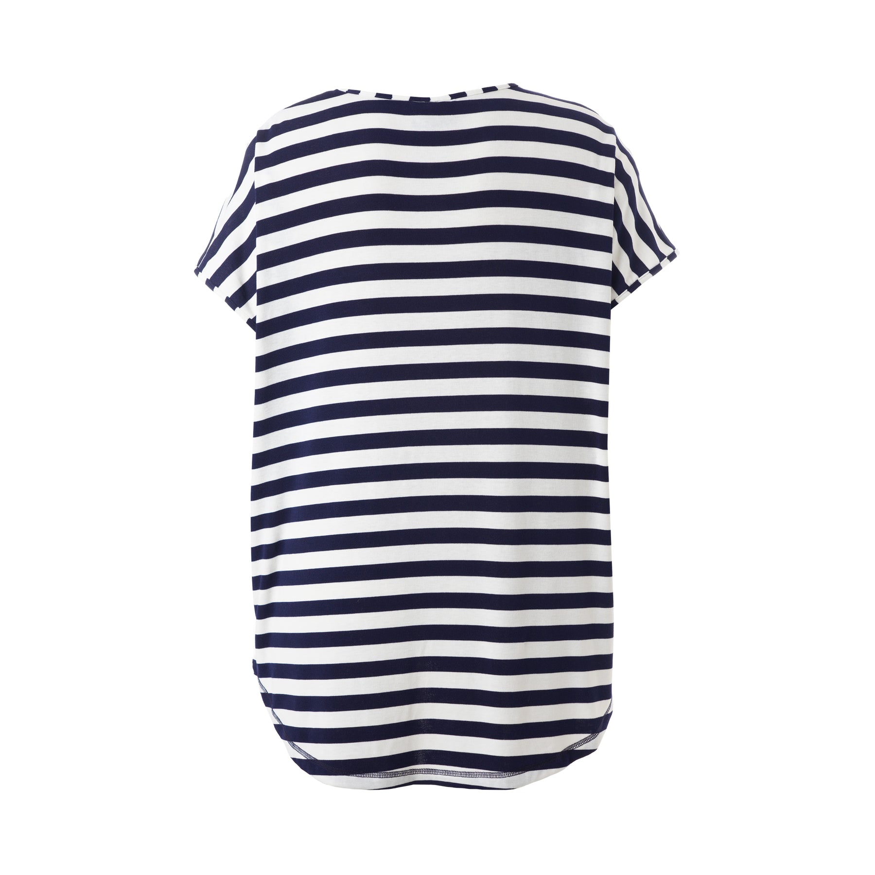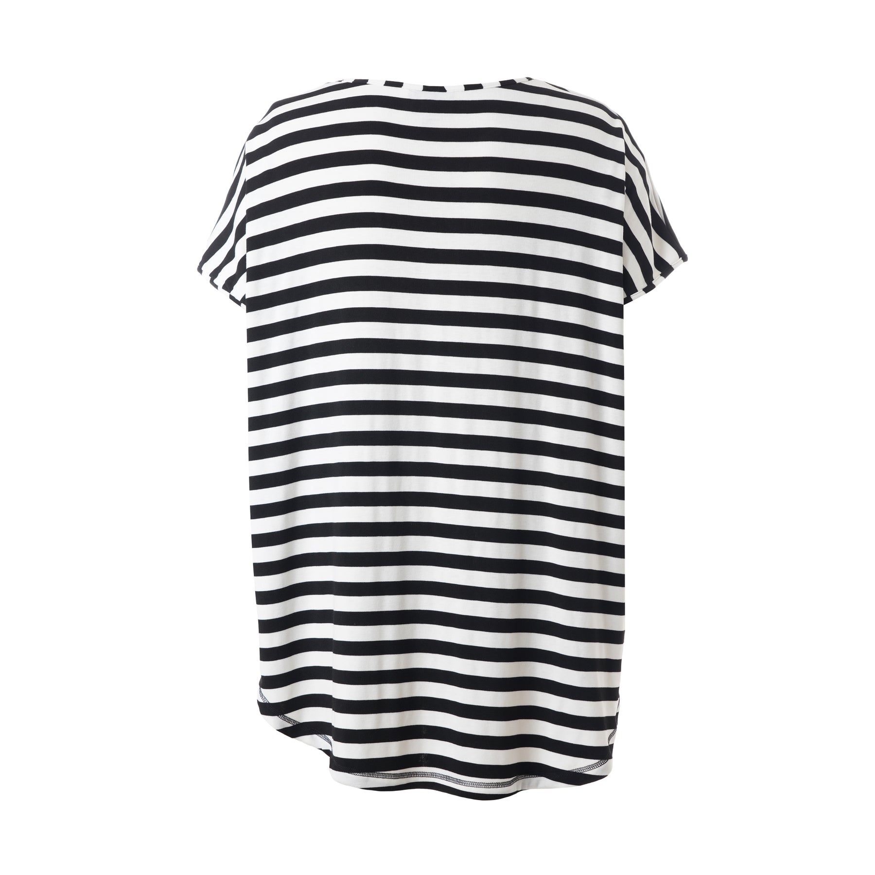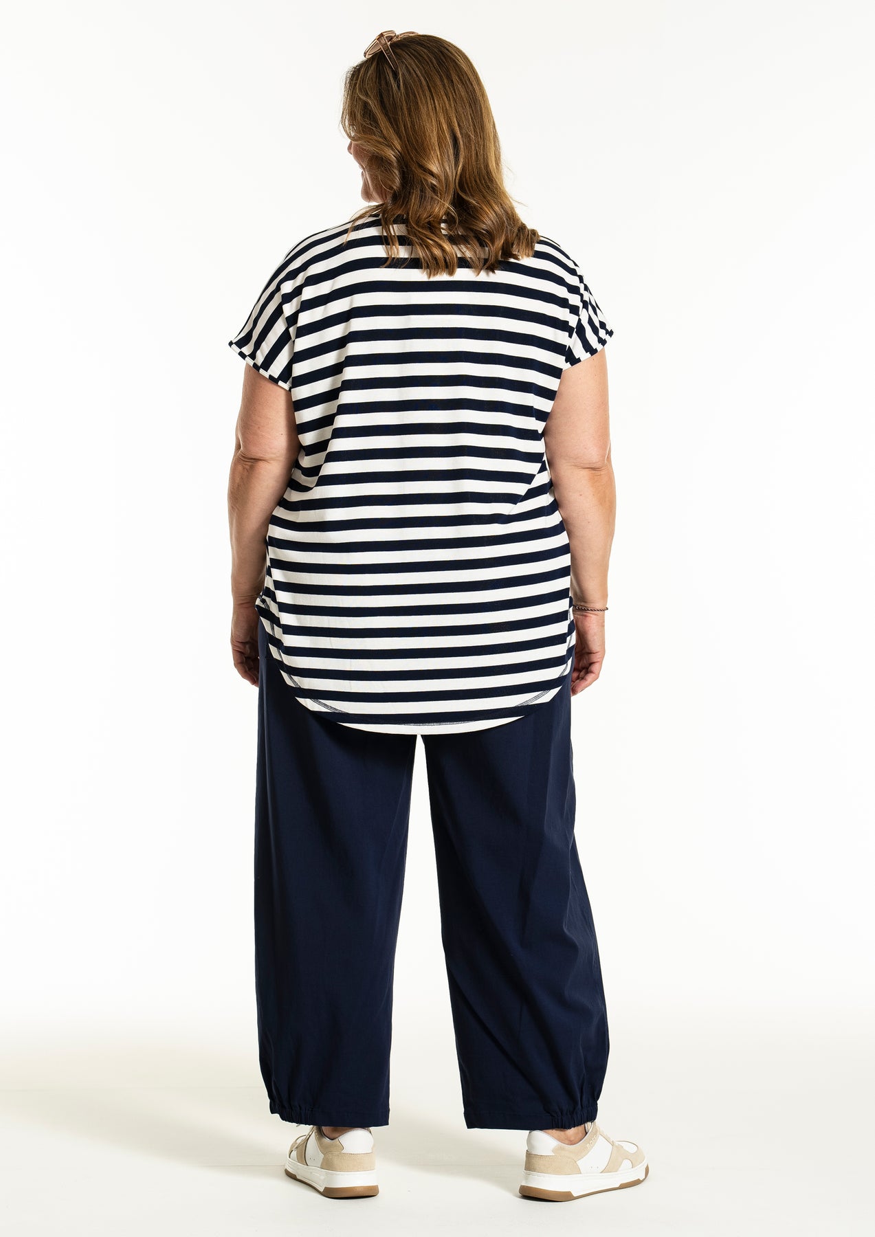 GOZZIP - Gitte röndóttur stuttermabolur. Bolurinn er úr góðu og þægilegu viskosefni, rúnað hálsmál, rúnaður að neðan og örlítið meiri sídd að aftan.
