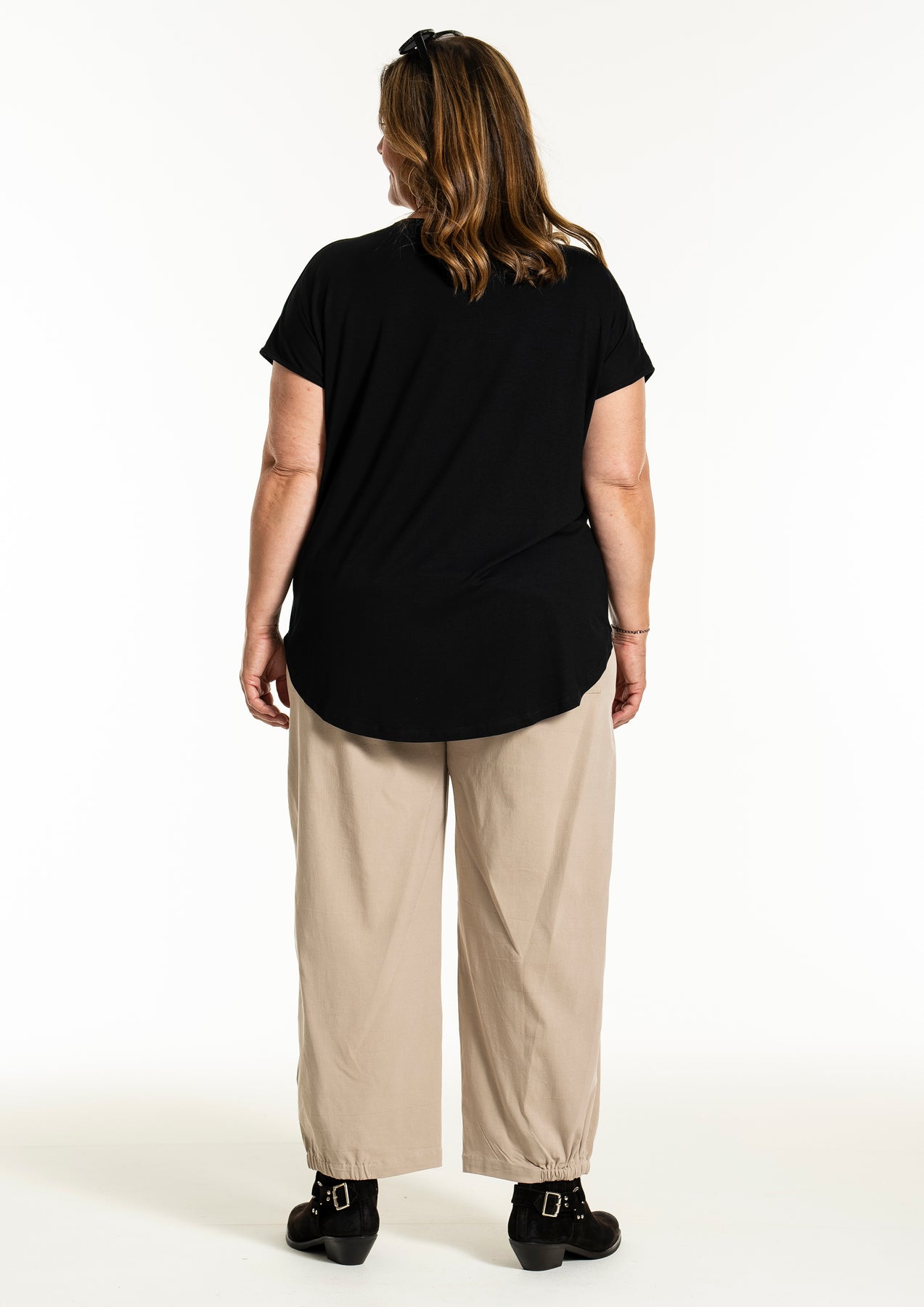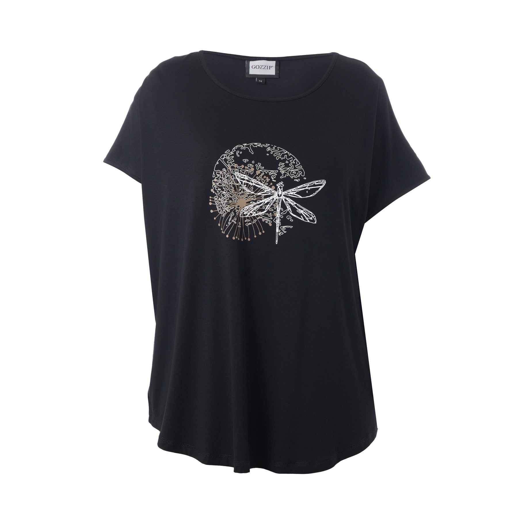 GOZZIP - Gitte stuttermabolur. Bolurinn er úr góðu og þægilegu viskosefni, rúnað hálsmál, rúnaður að neðan og örlítið meiri sídd að aftan.