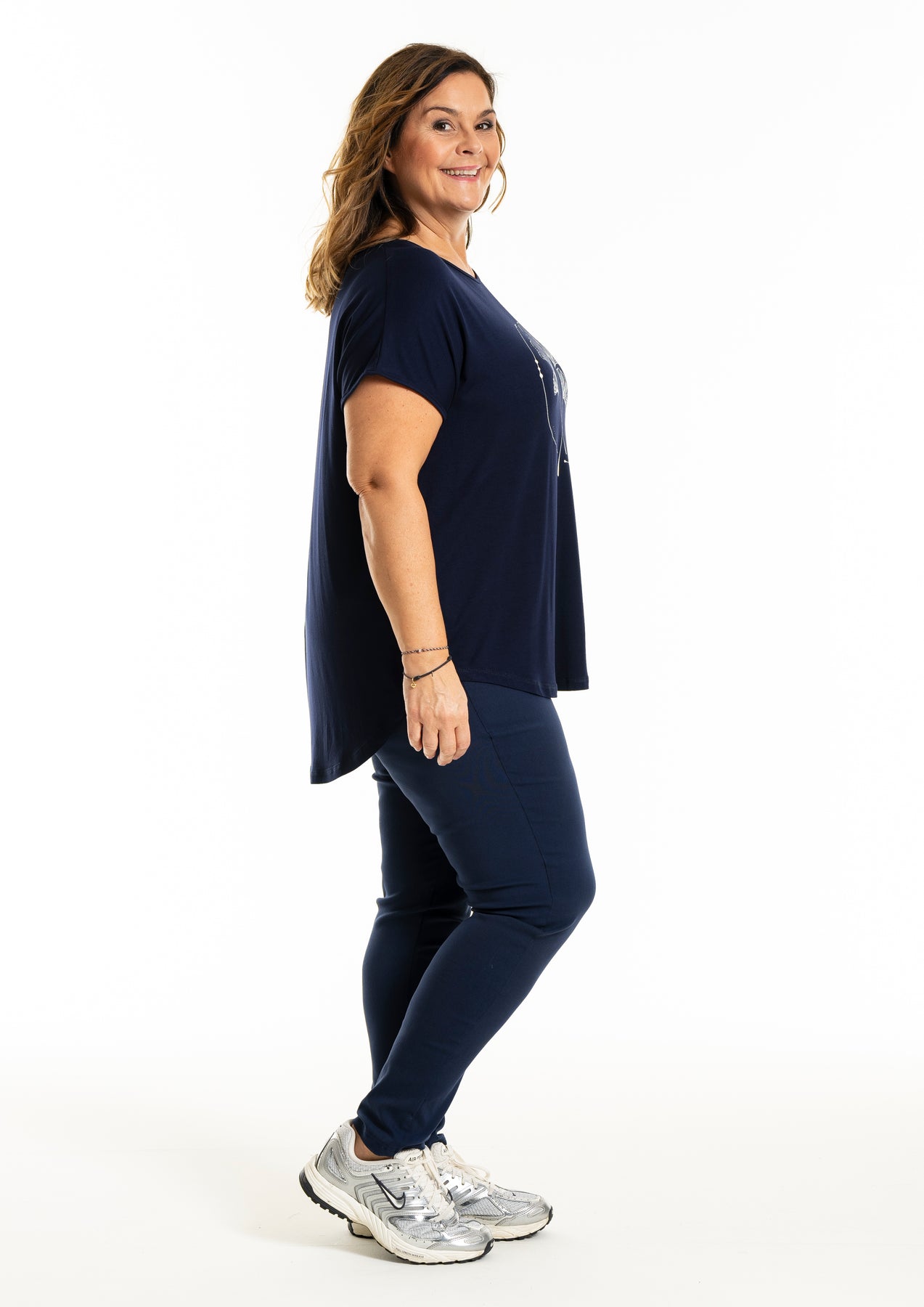 Gozzip - Gitte stuttermabolur. Bolurinn er úr góðu og þægilegu viskosefni, rúnað hálsmál, rúnaður að neðan og örlítið meiri sídd að aftan.