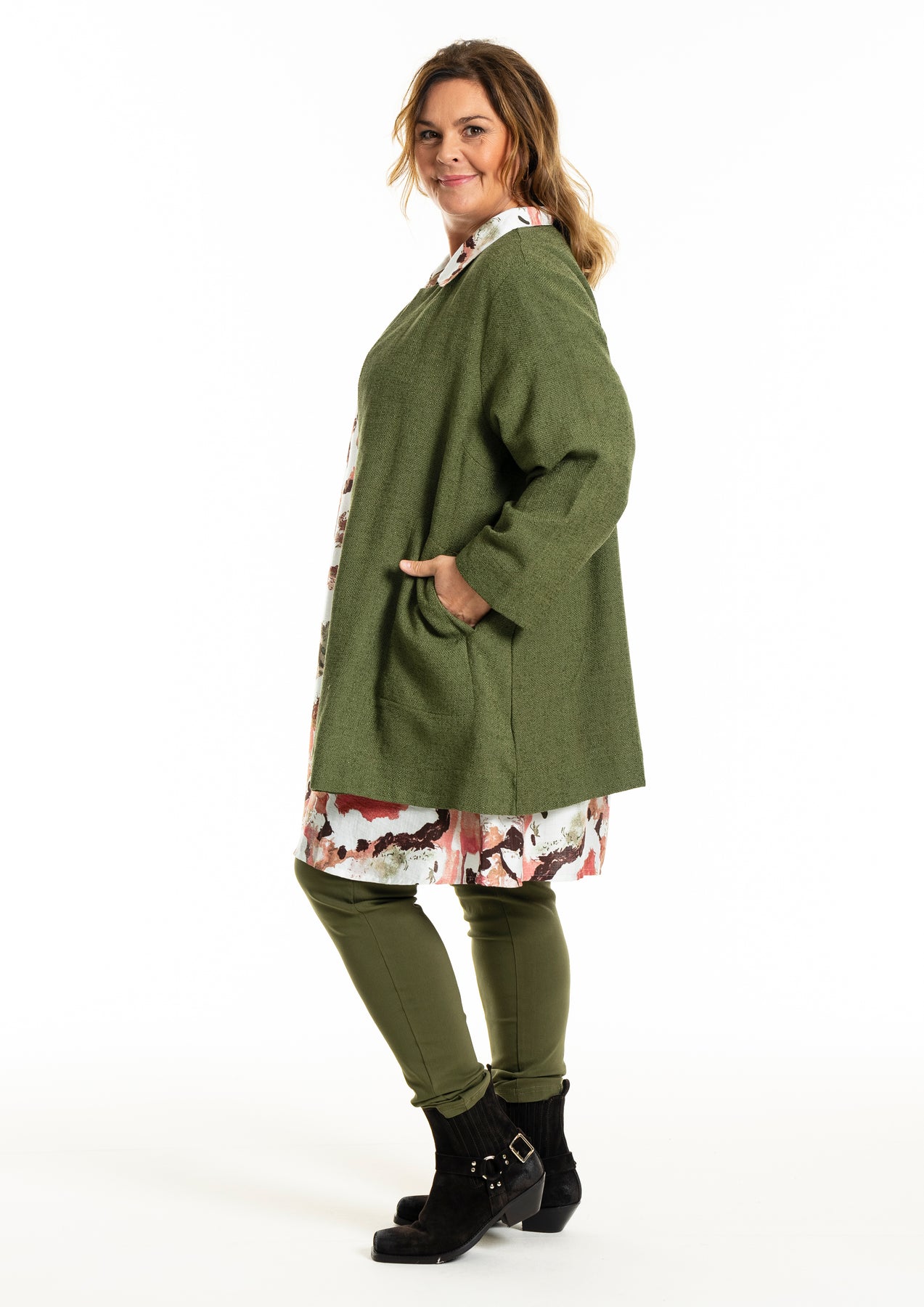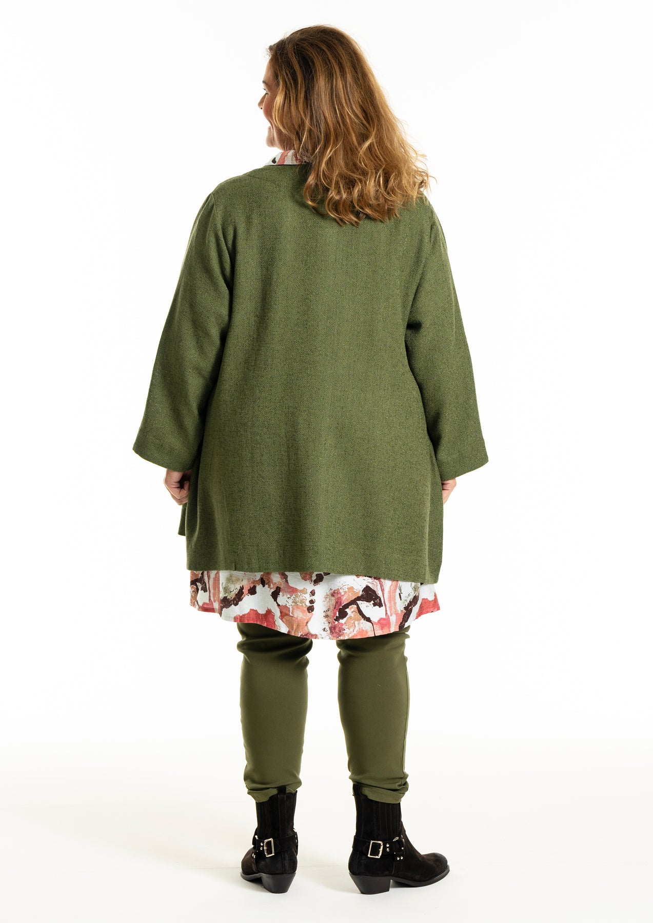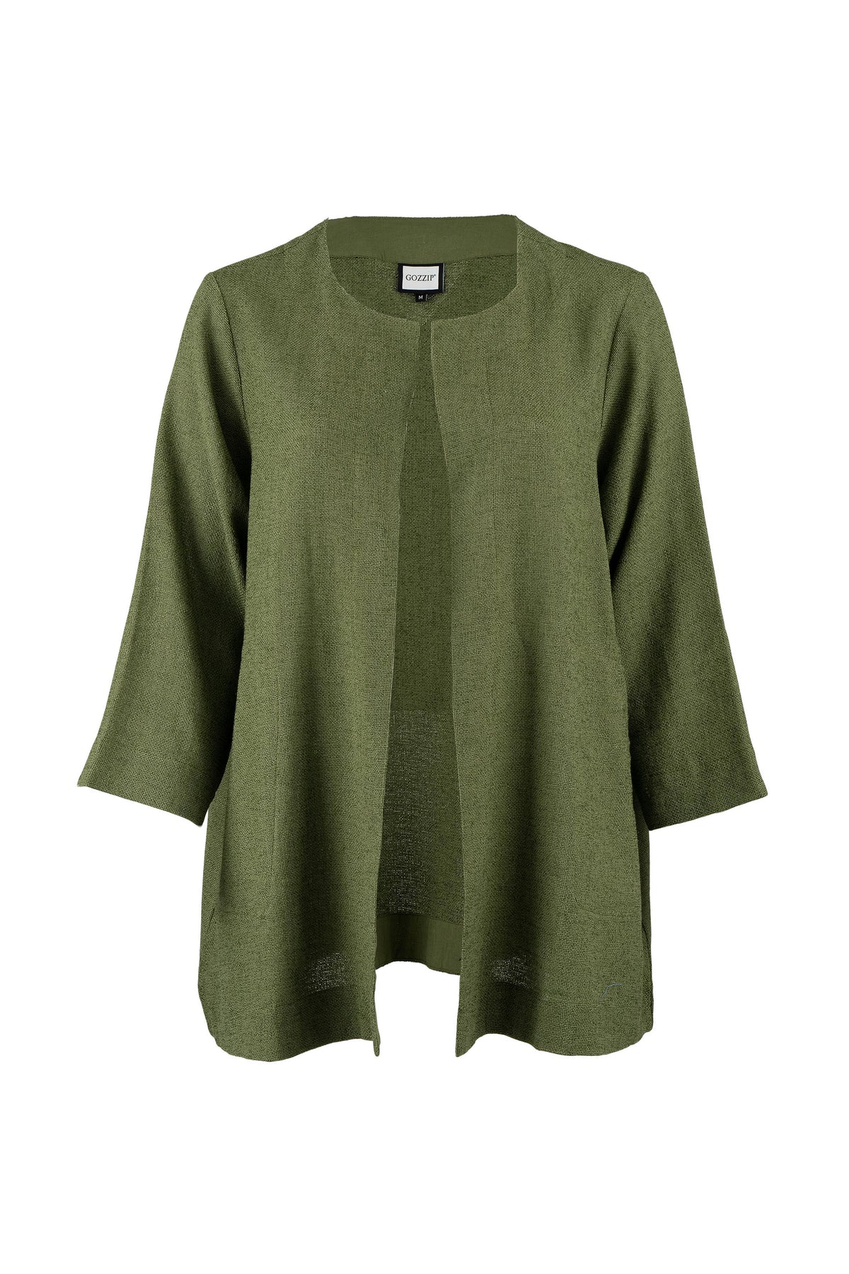 Gozzip - Josefine falleg og vönduð jakkapeysa með vösum. Langar ermar, opin að framan og er þokkalega síð, nær niður fyrir rass. Efni er gróft ofið viscose með líningu við kanta. Frábær peysa í vinnuna, henda yfir sig heima eða bara hvar sem er.