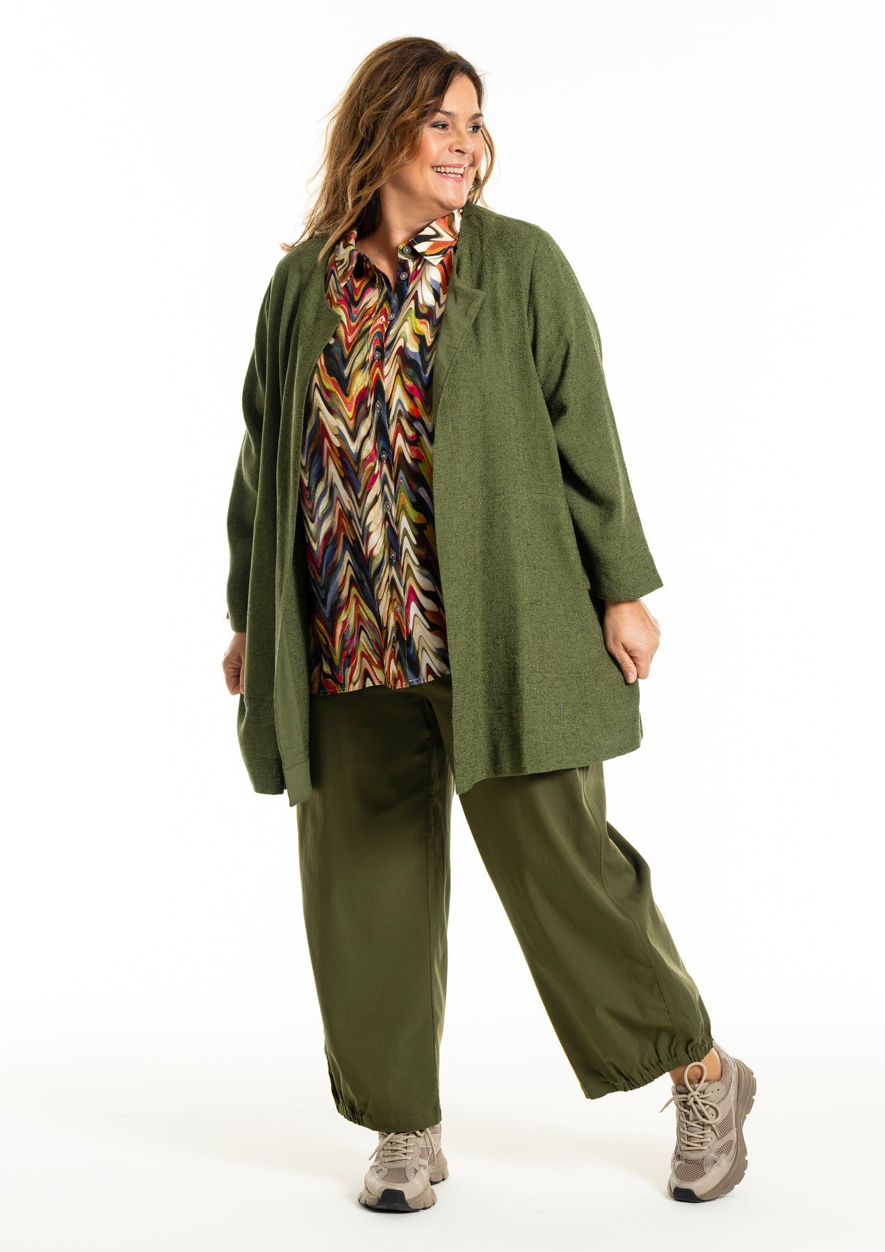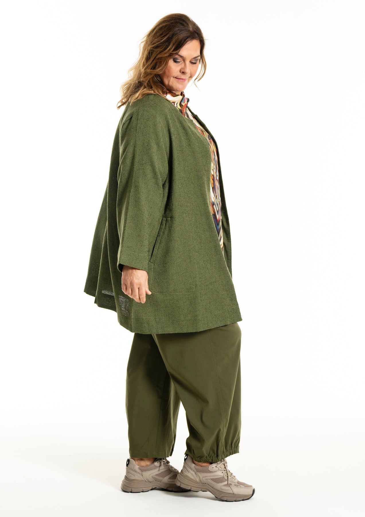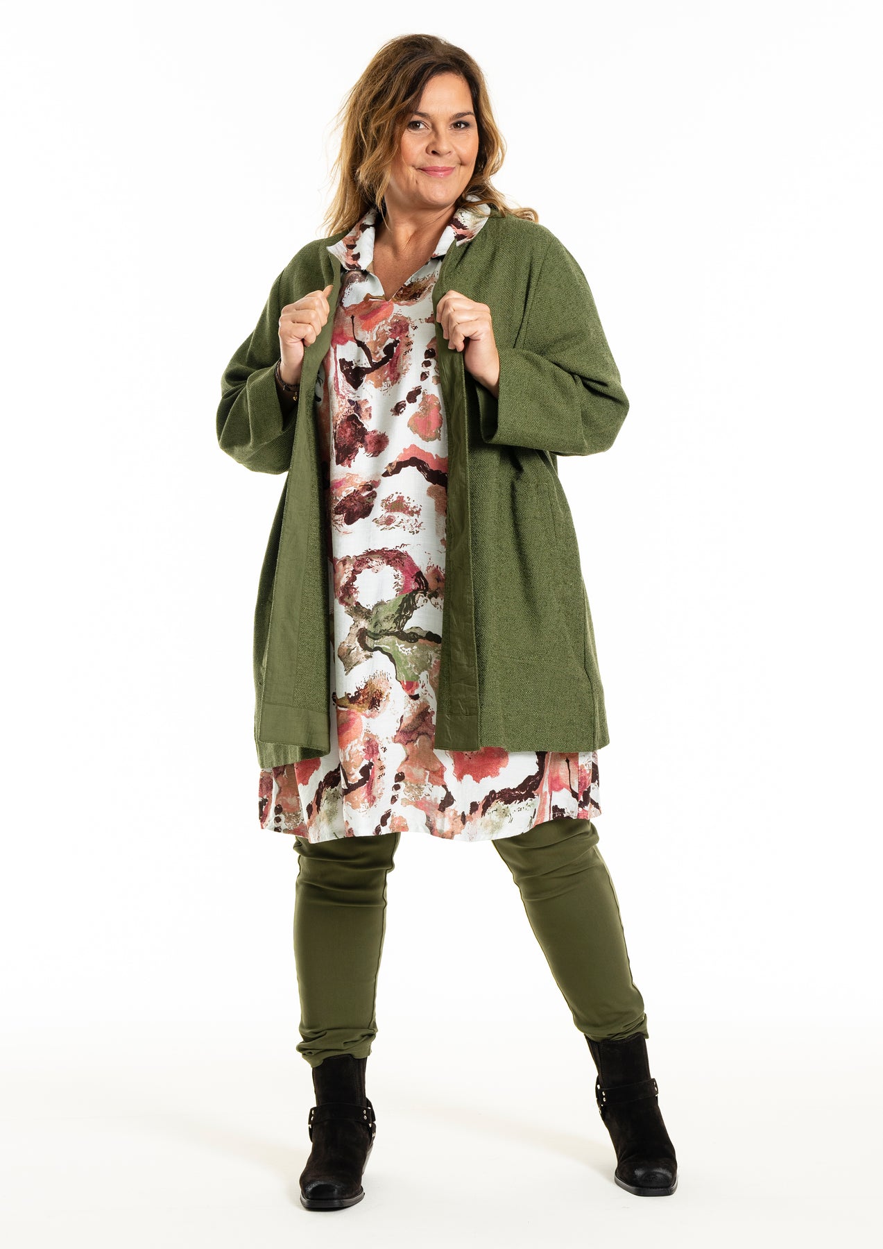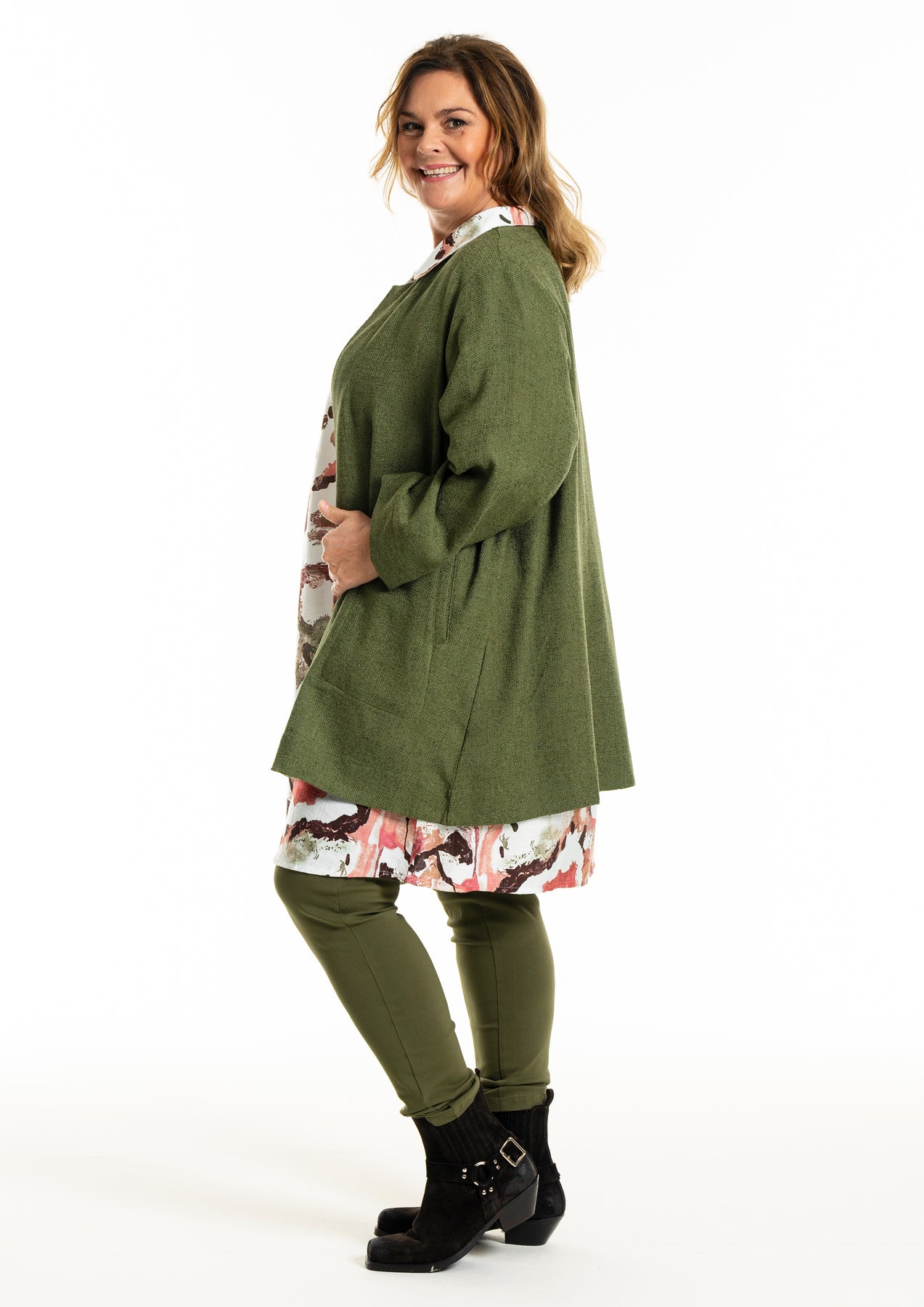 Gozzip - Josefine falleg og vönduð jakkapeysa með vösum. Langar ermar, opin að framan og er þokkalega síð, nær niður fyrir rass. Efni er gróft ofið viscose með líningu við kanta. Frábær peysa í vinnuna, henda yfir sig heima eða bara hvar sem er.