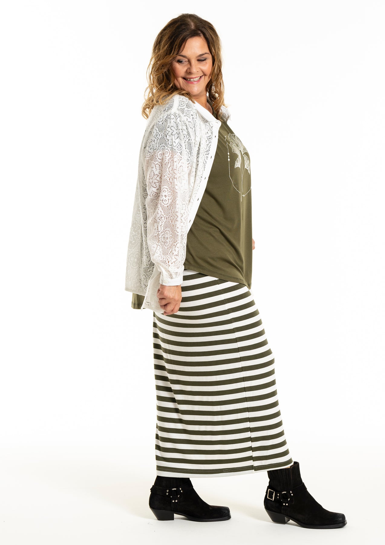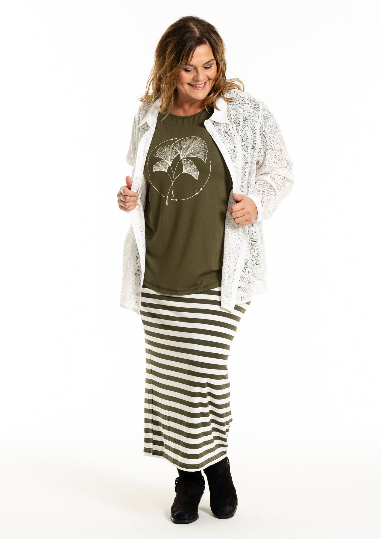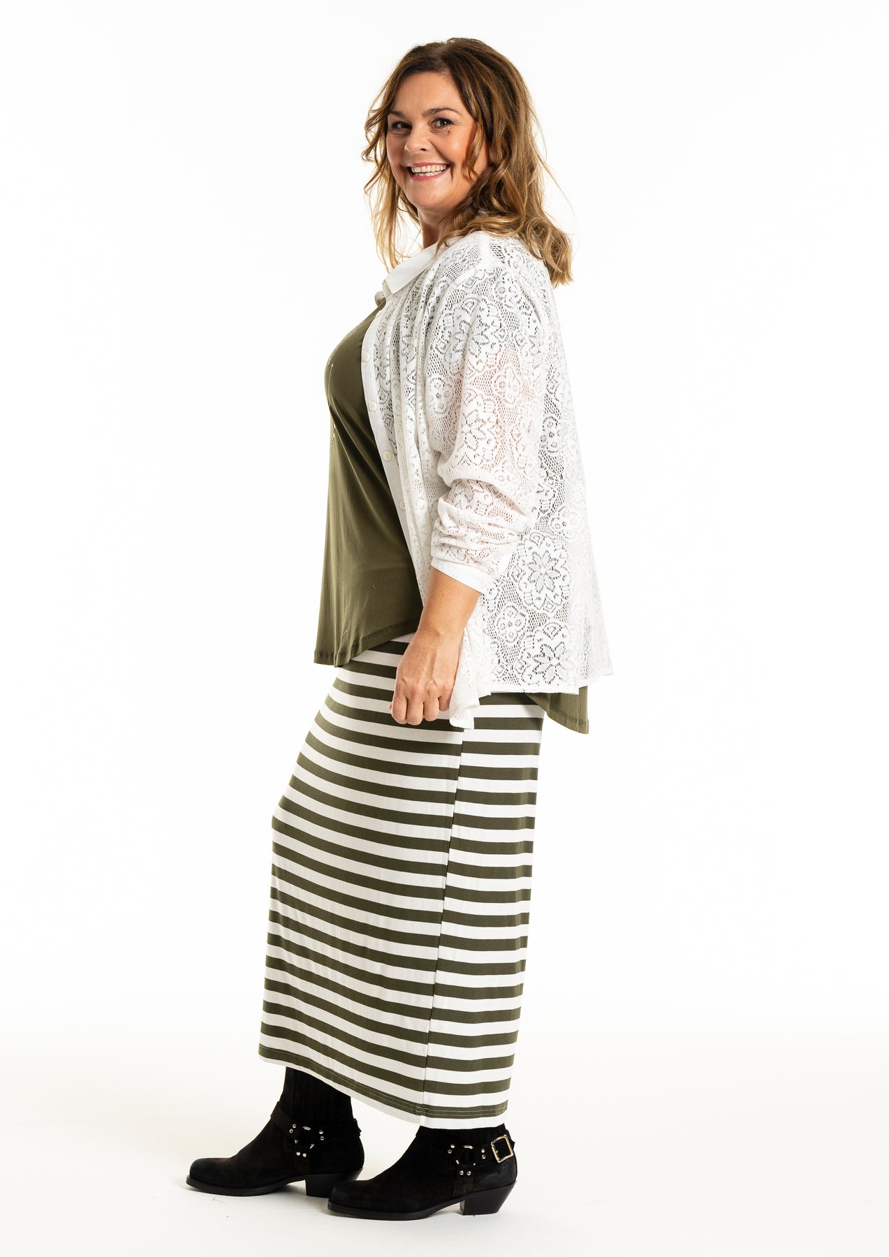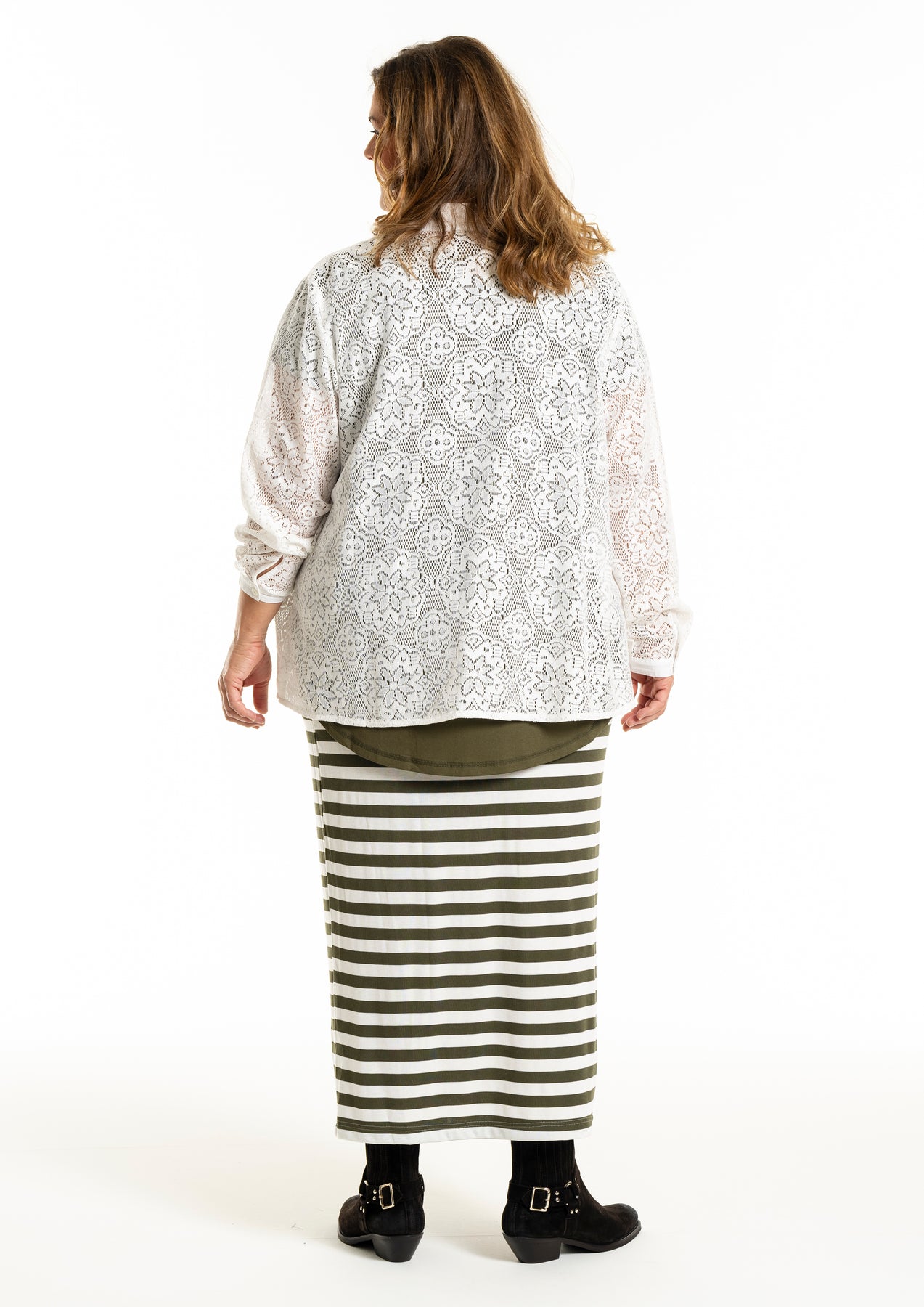 Gozzip - Myra falleg og sparileg blúnduskyrta. Skyrtukragi, hneppt niður að framan, langar ermar, hálfgegnsætt efni. Hægt að nota opna yfir buxur og topp eða lokaða.
