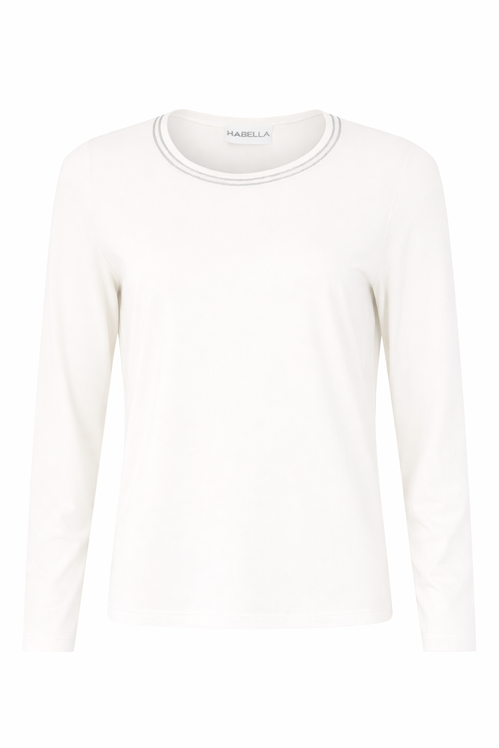 Habella - Gina, einfaldur langermabolur með rúnuðu hálsmáli, silfur þráður í hálsmáli.