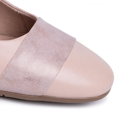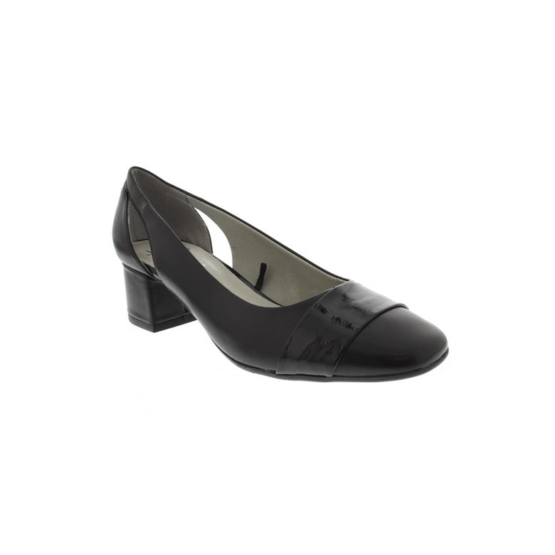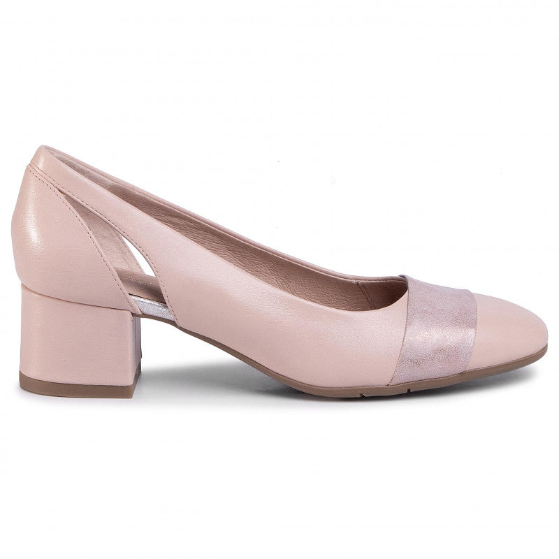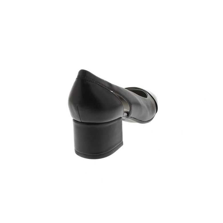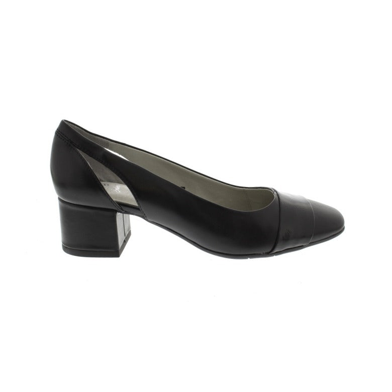 Jana - hælaskór úr leðri með skraut renning yfir rist og smart opi á hliðum.