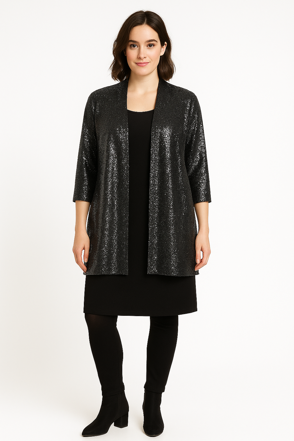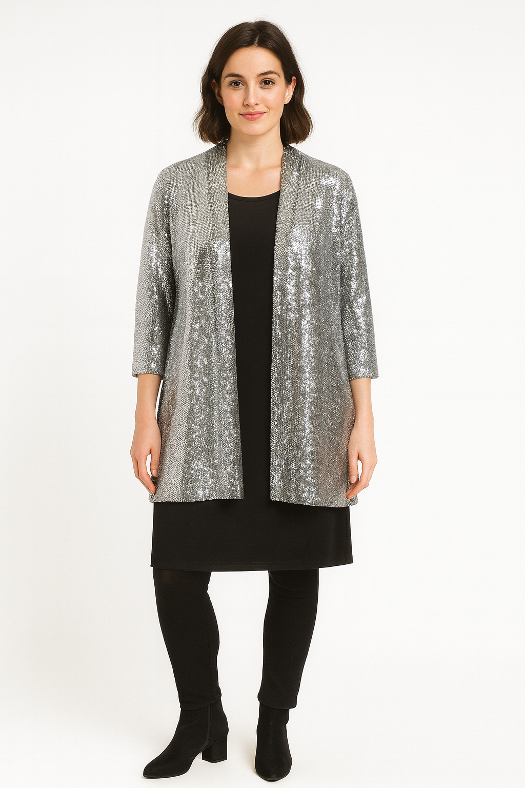 Bassini glimrandi jakkapeysa , fullkominn til að gera hvaða topp eða kjól sem extra hátíðlegan.