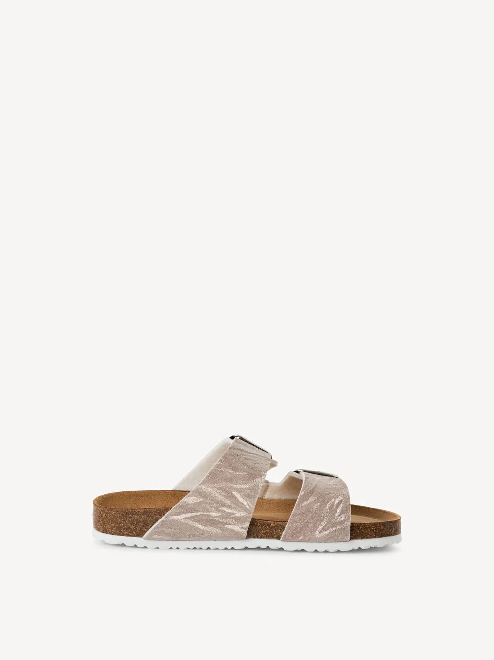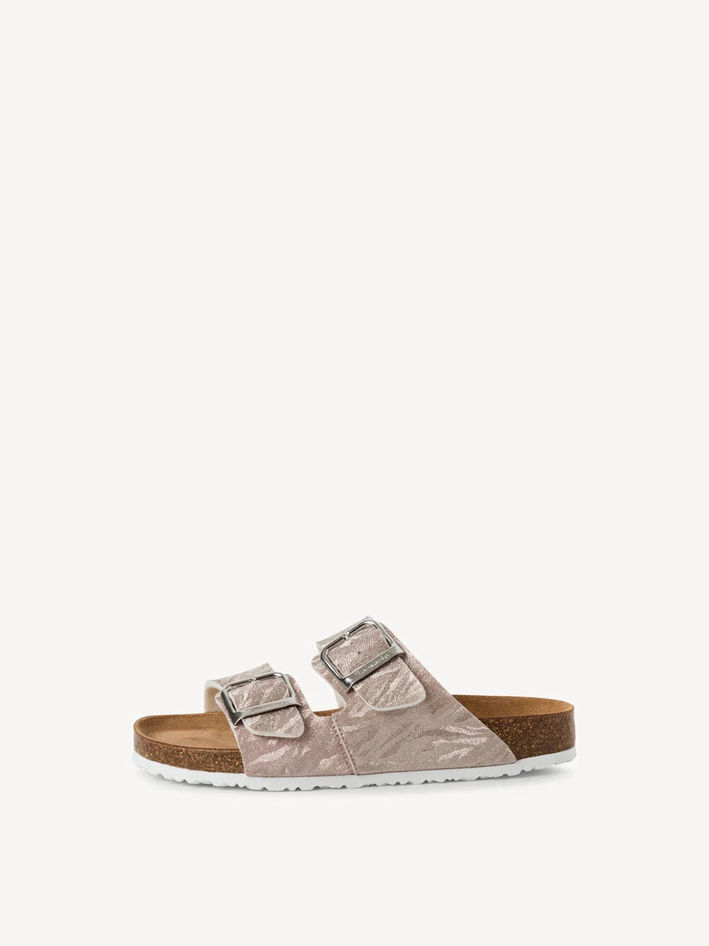 Tamaris - Fallegir og góðir leður inniskór/sandalar. Rúnuð tá og breið bönd yfir rist með sylgju, þannig að hægt er að stilla skóinn og aðlaga að fætinum eftir þörfum.
