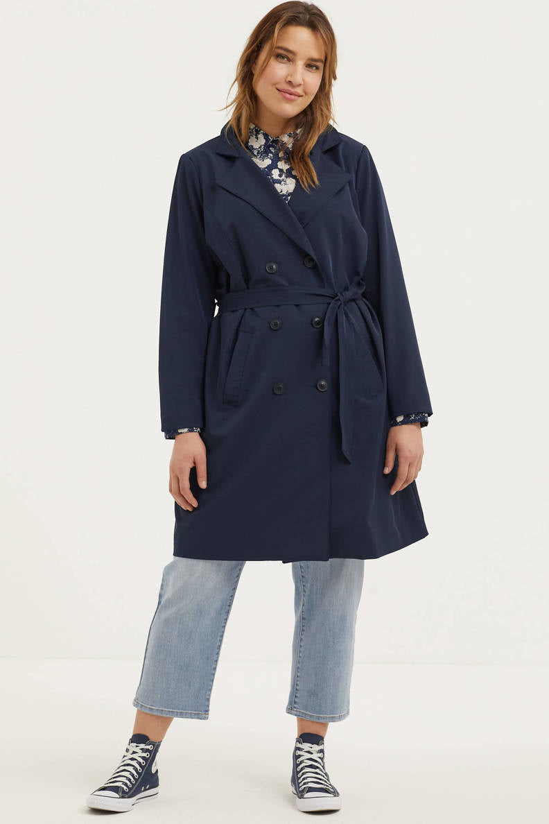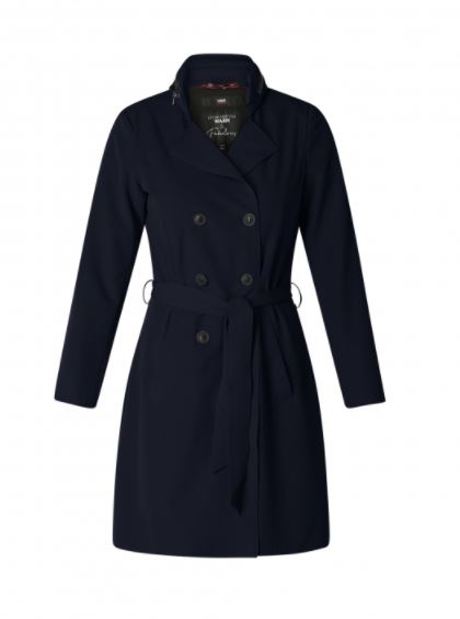 YestA, létt og lipur tvíhneppt sumarkápa "Trenchcoat" með góðum vösum og hettu sem fer inní kragann. Fæst aðeins í navybláu.