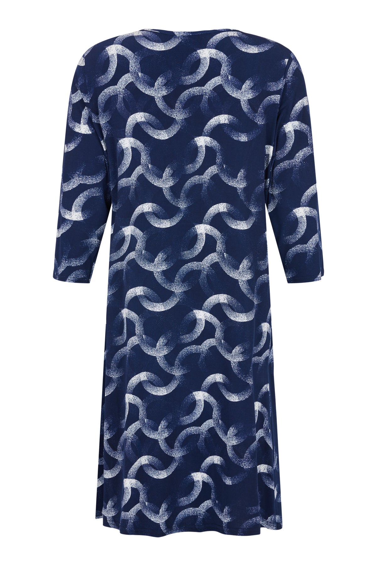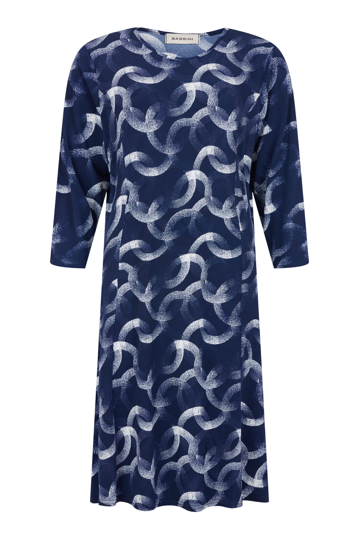 Bassini - Valerie fallegur og sparilegur kjóll með flottu mynstri. Rúnað hálsmál, kvartermar og A-snið. Flottur einn og sér og undir fínan jakka eða opna peysu.
