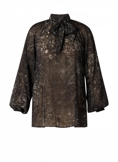 Yest - Pastora falleg og smart mynstruð tunika með háum kraga og böndum. Langar og víðar ermar með teygju, hálfgegnsætt efni. Passar vel hvar sem er, bæði hversdags og spari.