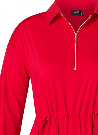 YestA - Hilde flottur og sportlegur kjóll með góðum vösum. Skyrtukragi, V-hálsmál með rennilás, langar ermar, rúnaður að neðan, aðeins síðari að aftan, strengur í mittið sem hægt er að draga saman.