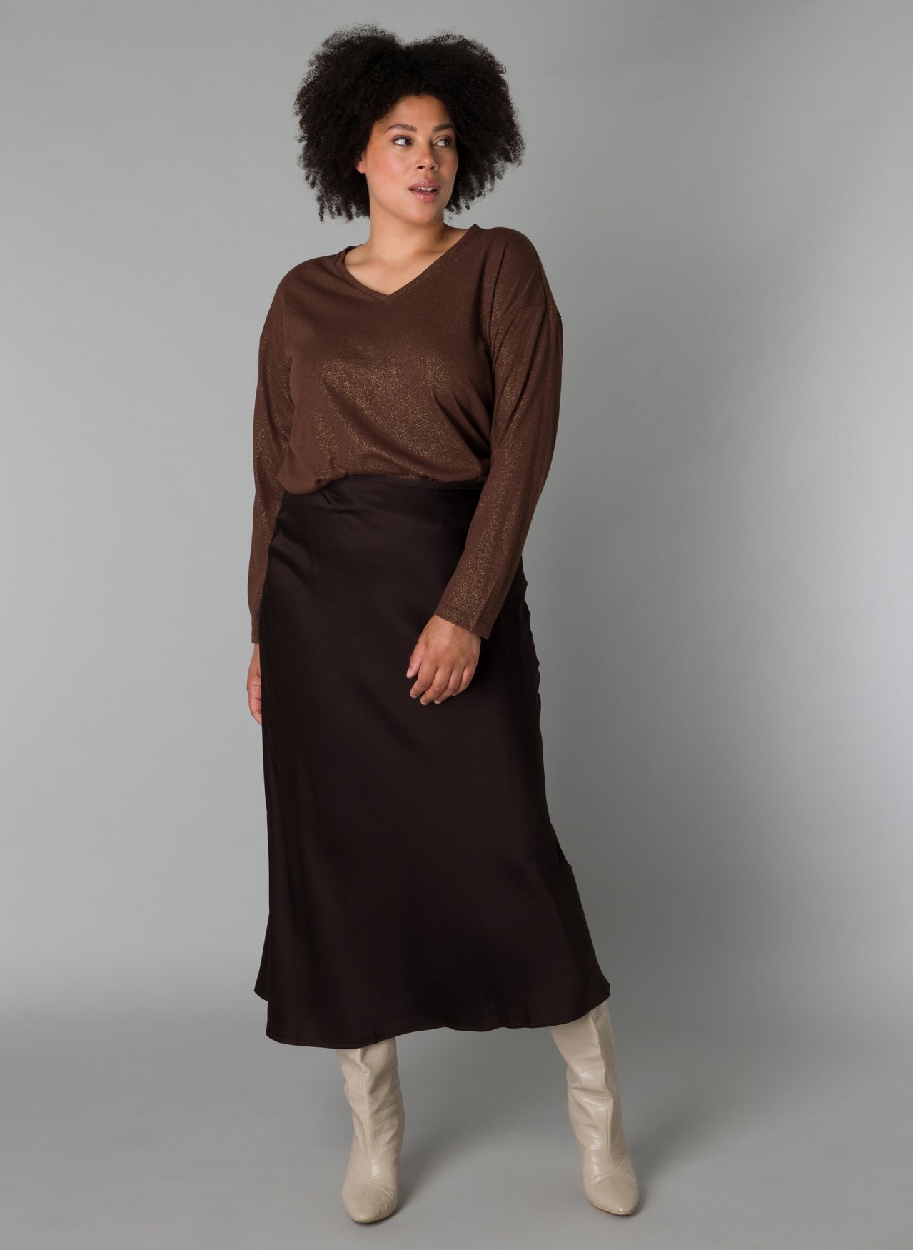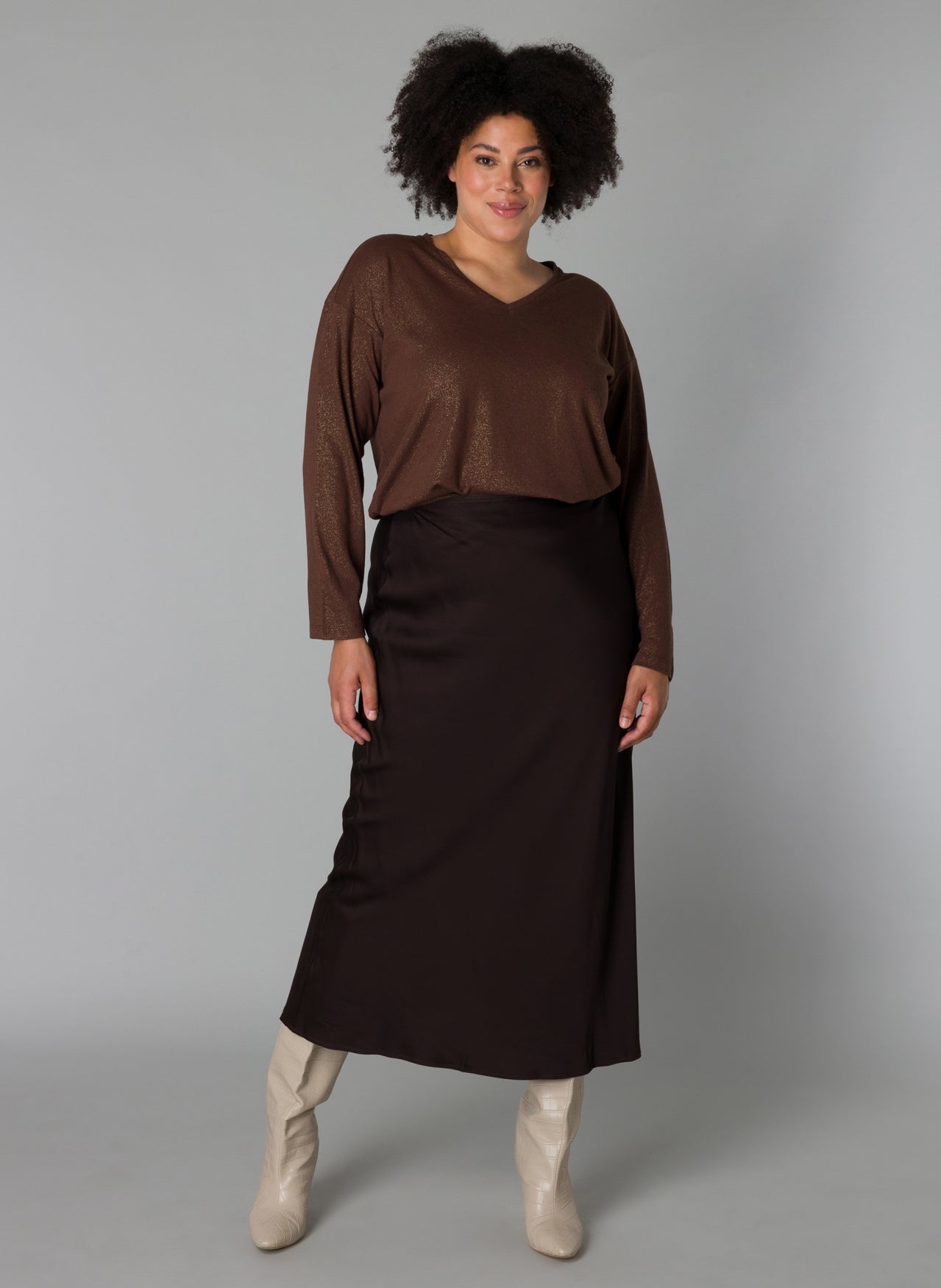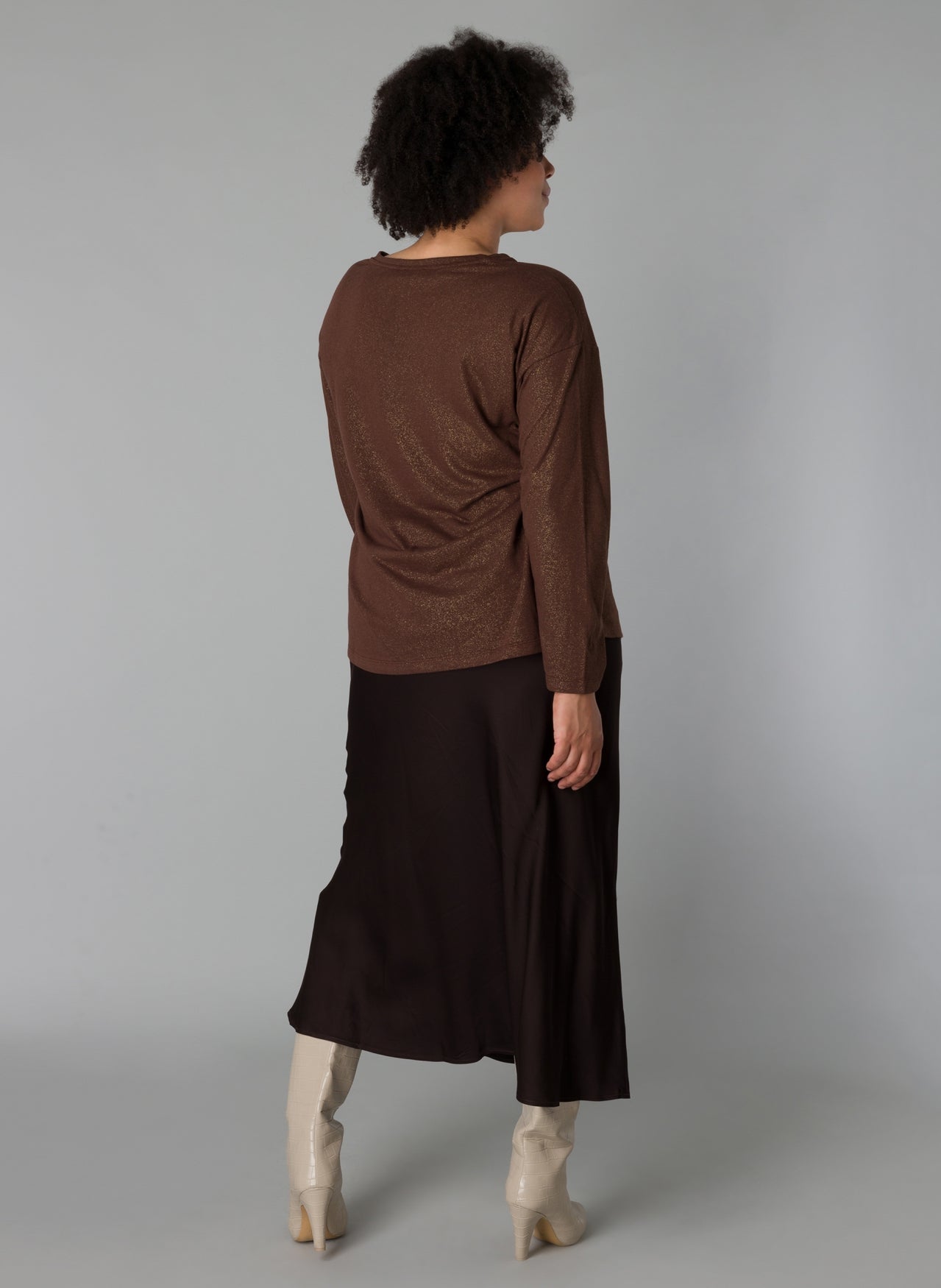 YestA - Shaylee flottur og sparilegur glimmer toppur með V-hálsmáli og löngum ermum. Hentar við pils, gallabuxur eða hinar vinsælu treggings.
