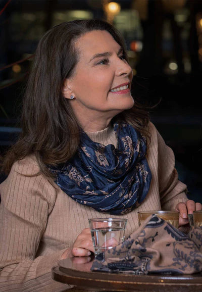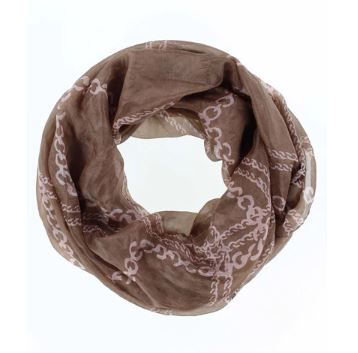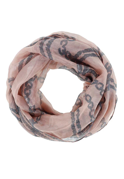 Léttur og lipur hringklútur með snúningi, sem gerir það að verkum að hann fellur vel þegar hann liggur óvafinn um hálsinn.