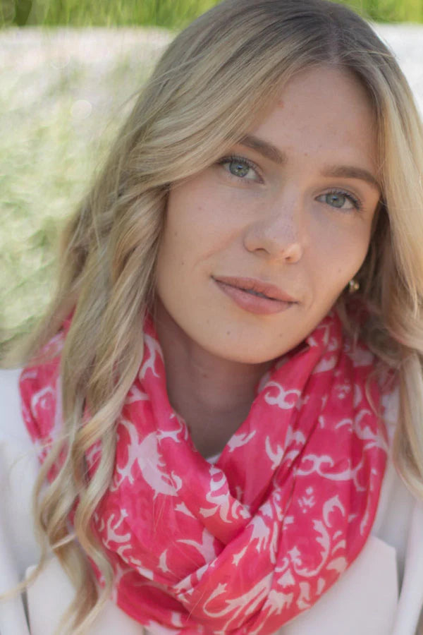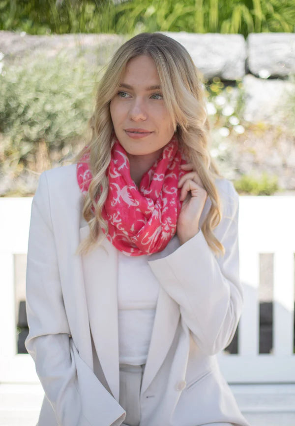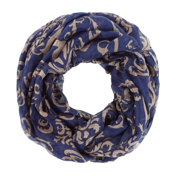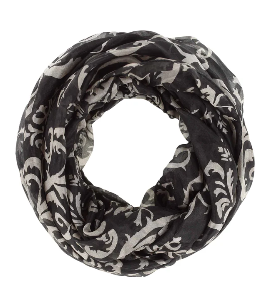 Léttur og lipur hringklútur með snúningi, sem gerir það að verkum að hann fellur vel þegar hann liggur óvafinn um hálsinn.