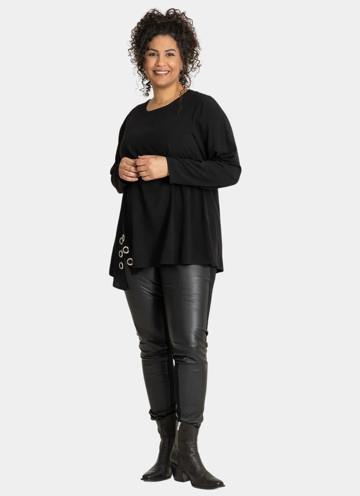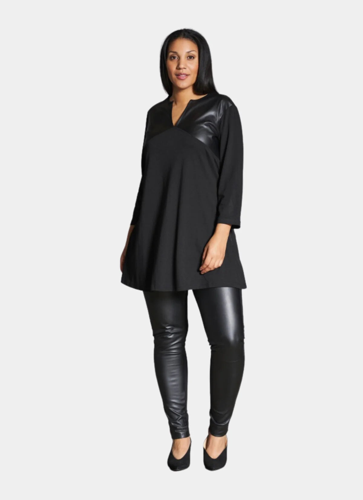 Studio - treggingsbuxur með pleðri að framan og þæginlegu viscose efni að aftan.